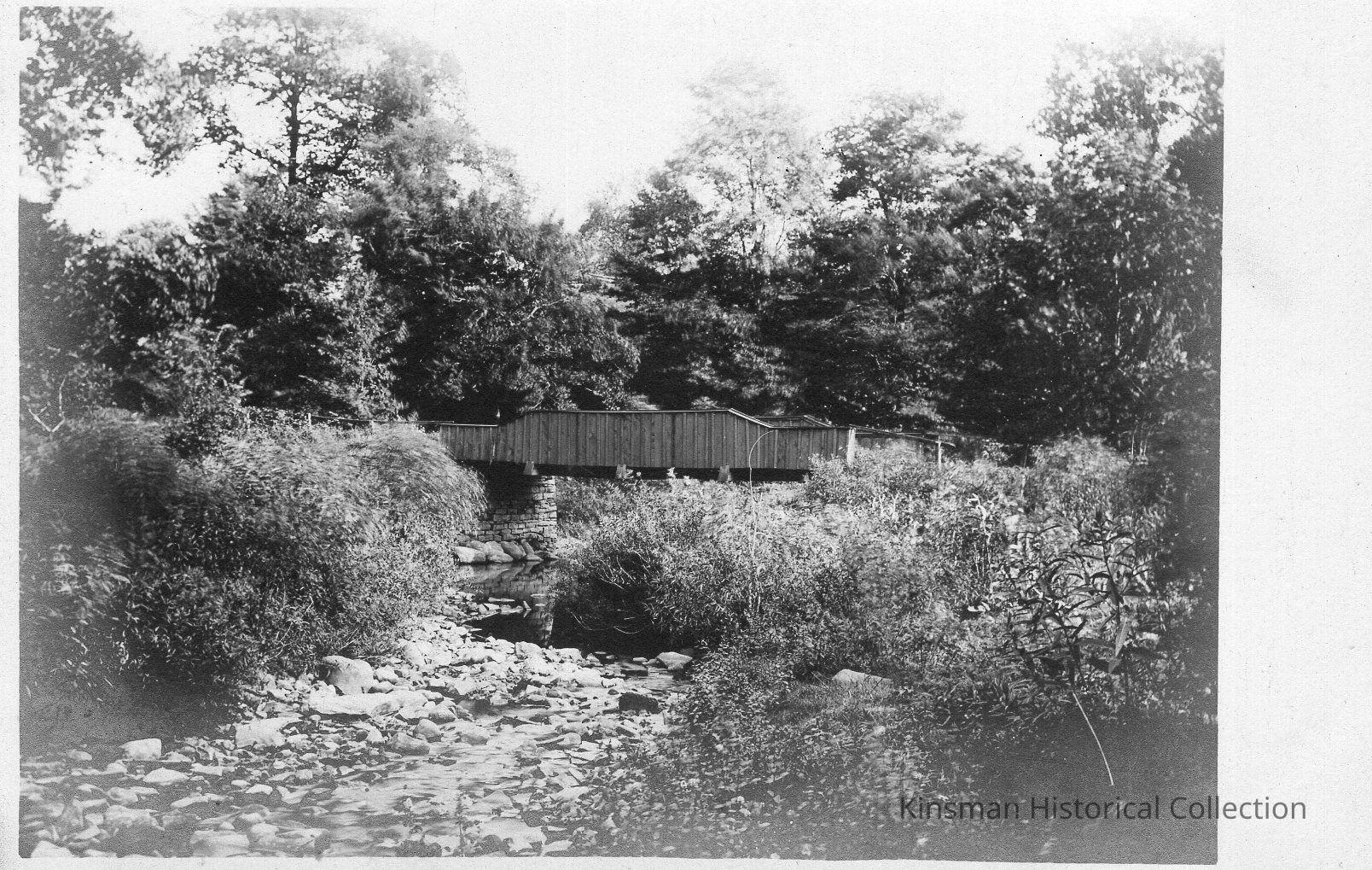 Rocky and shrub lined creek bed described as "Bridge across Stratton Creek at Rt. 5 north of Kinsman".Cataloged By