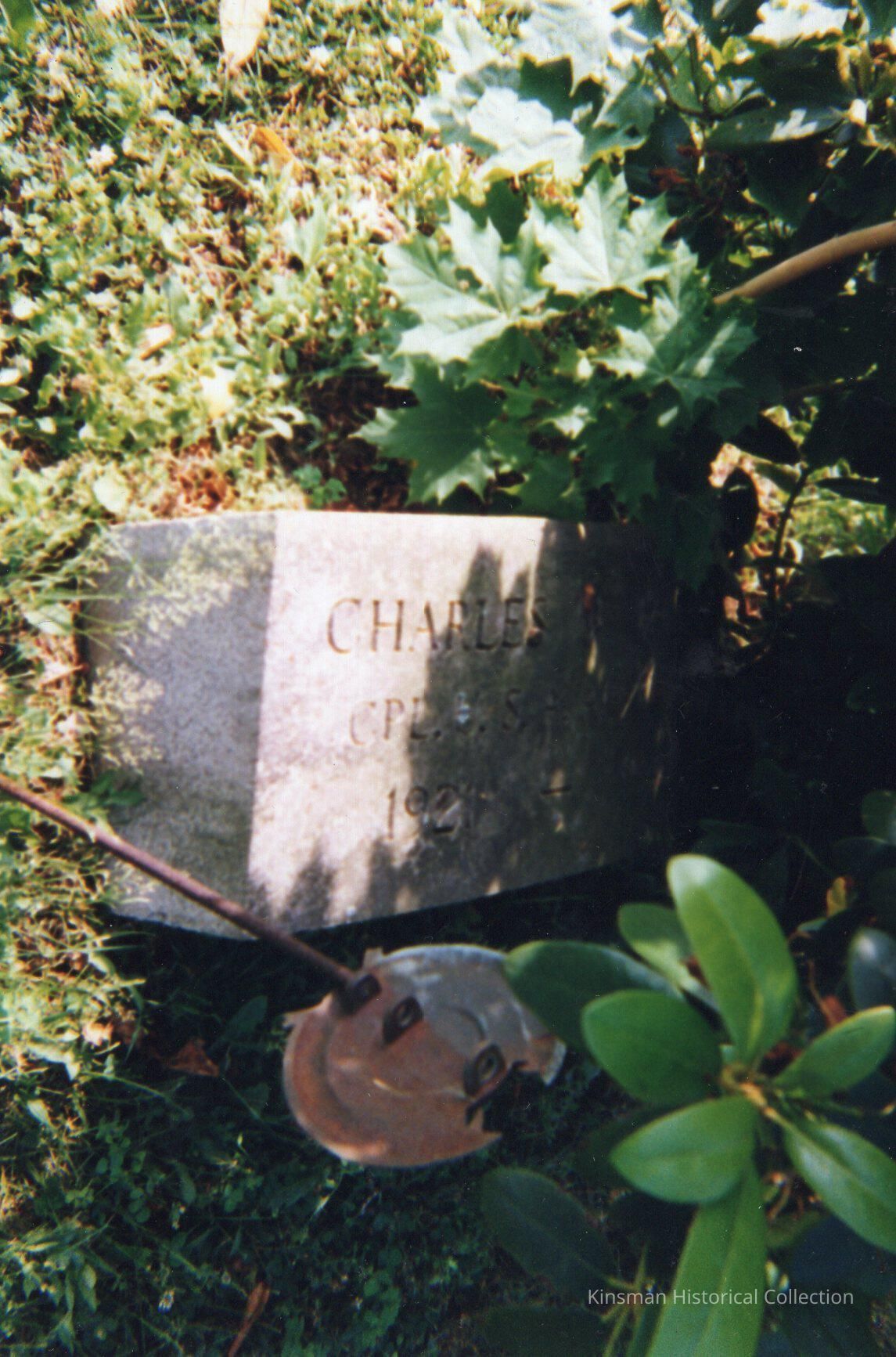 Charles W. Marvin headstone covered by foliage. Details "CPL. U.S.A. Air Corps 1921-1944" from (2007.2.23).Collection