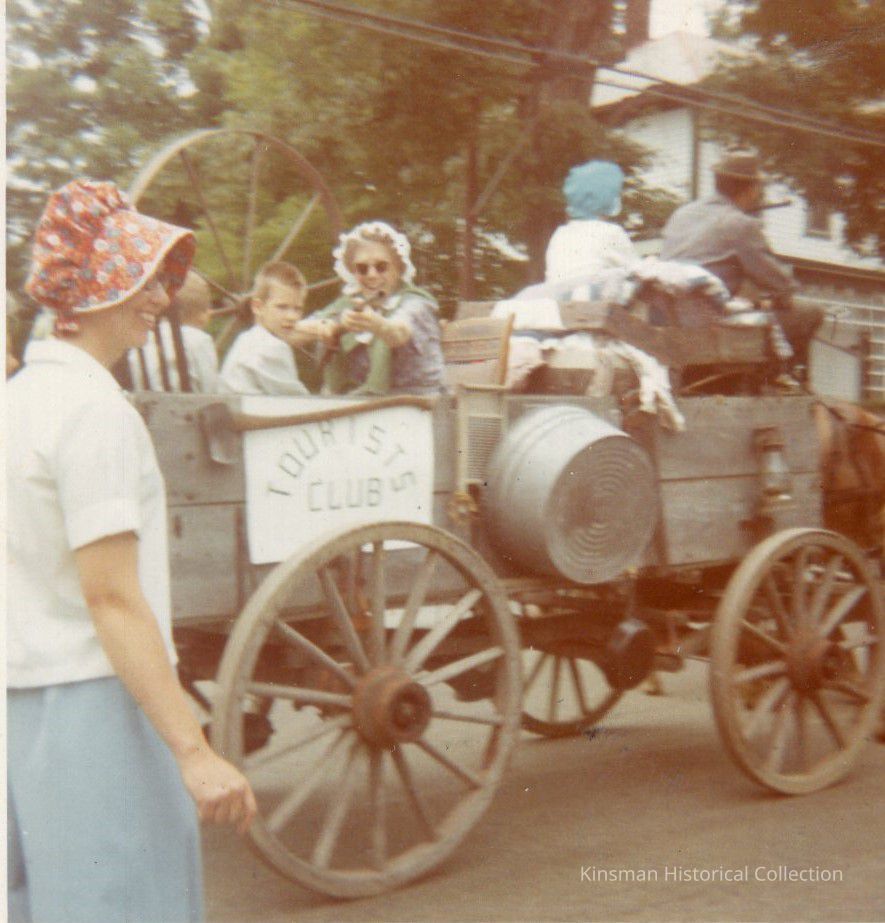 Tourists Club horse and buggy parade float carrying several people.Collection