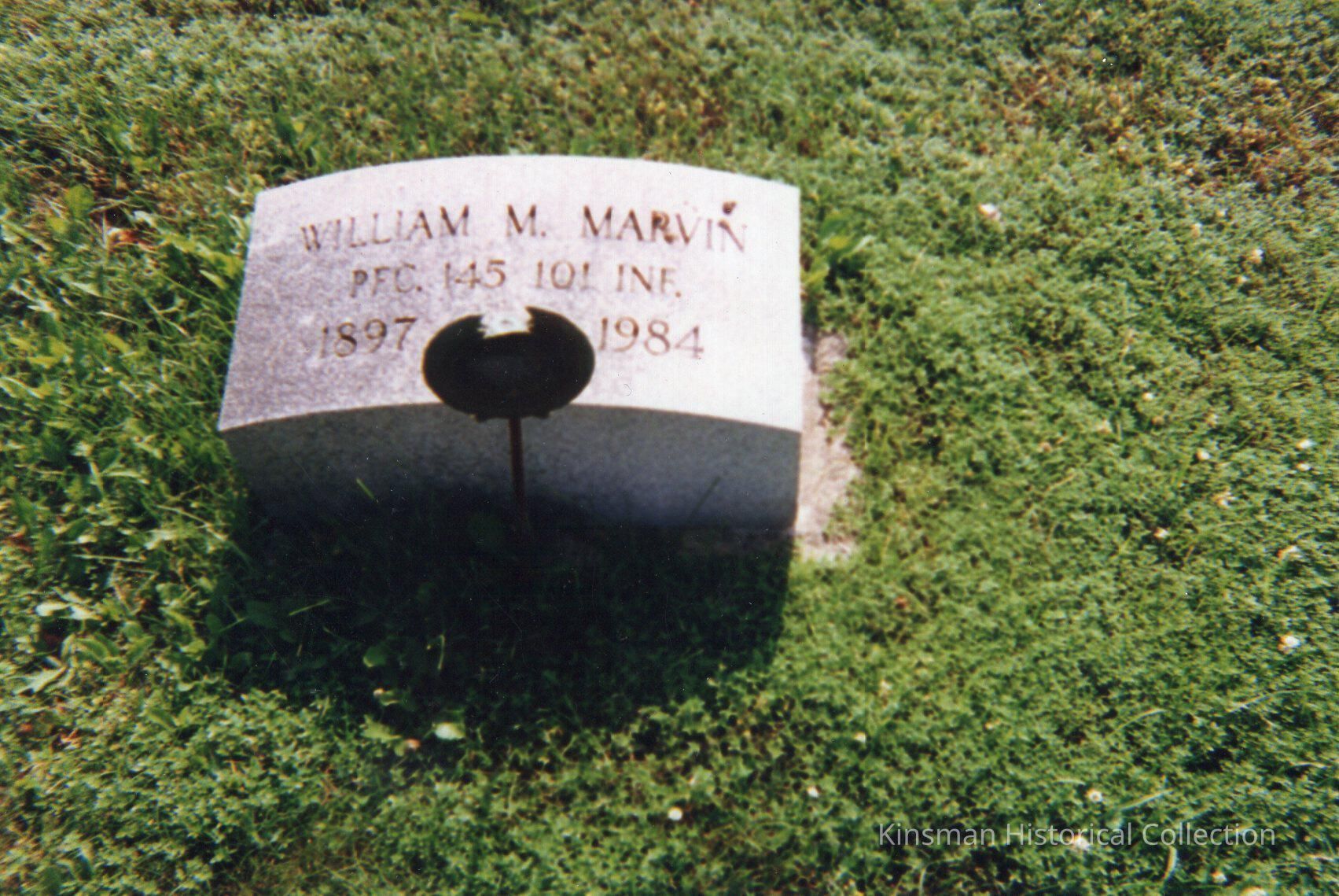 William M. Marvin's headstone in a cemetery with the details "PFC. 145 101 INF. 1897-1984".Collection