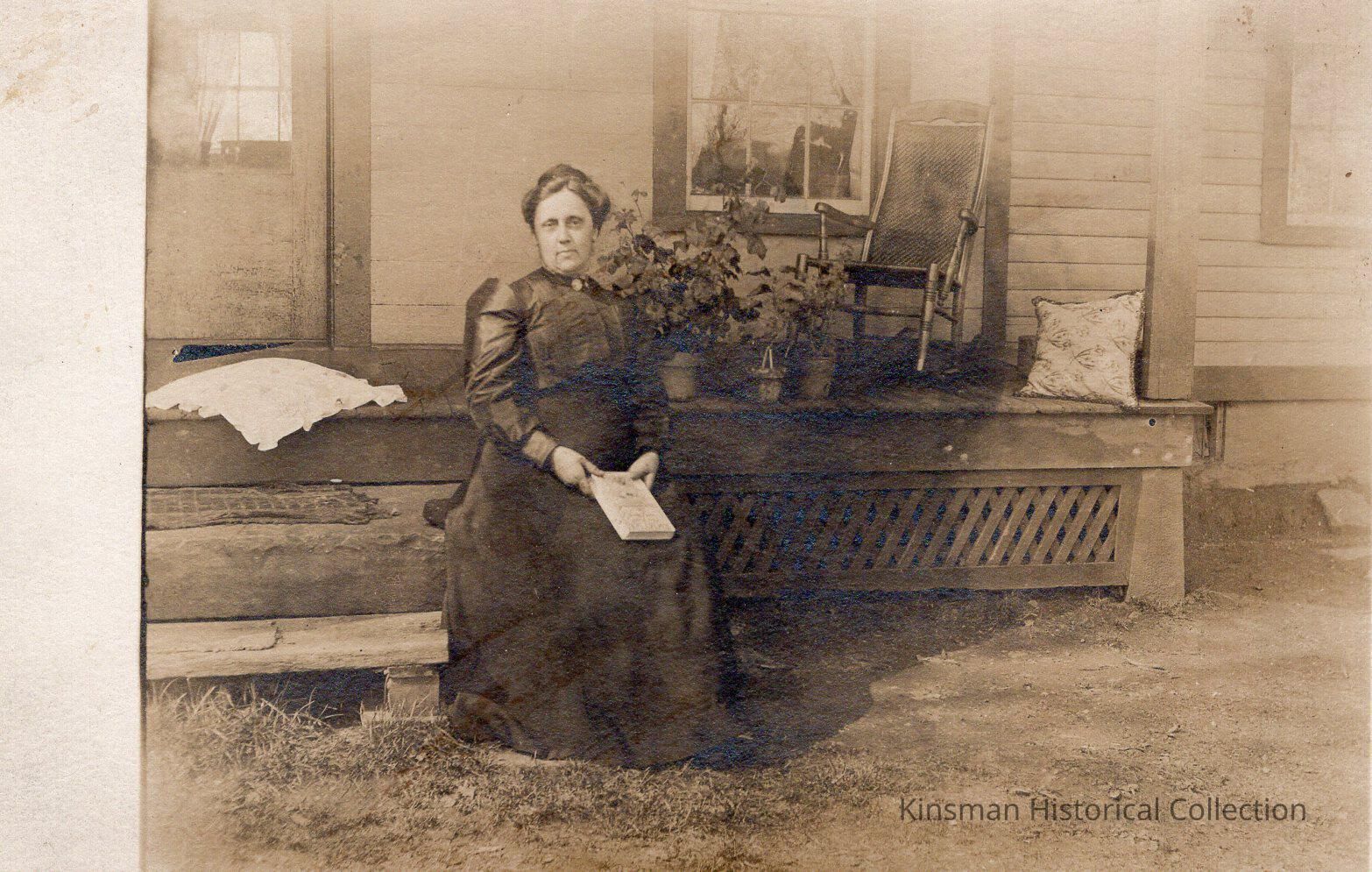 Matie (Root) Hurlbert Way sitting with a book on a porch step.Collection