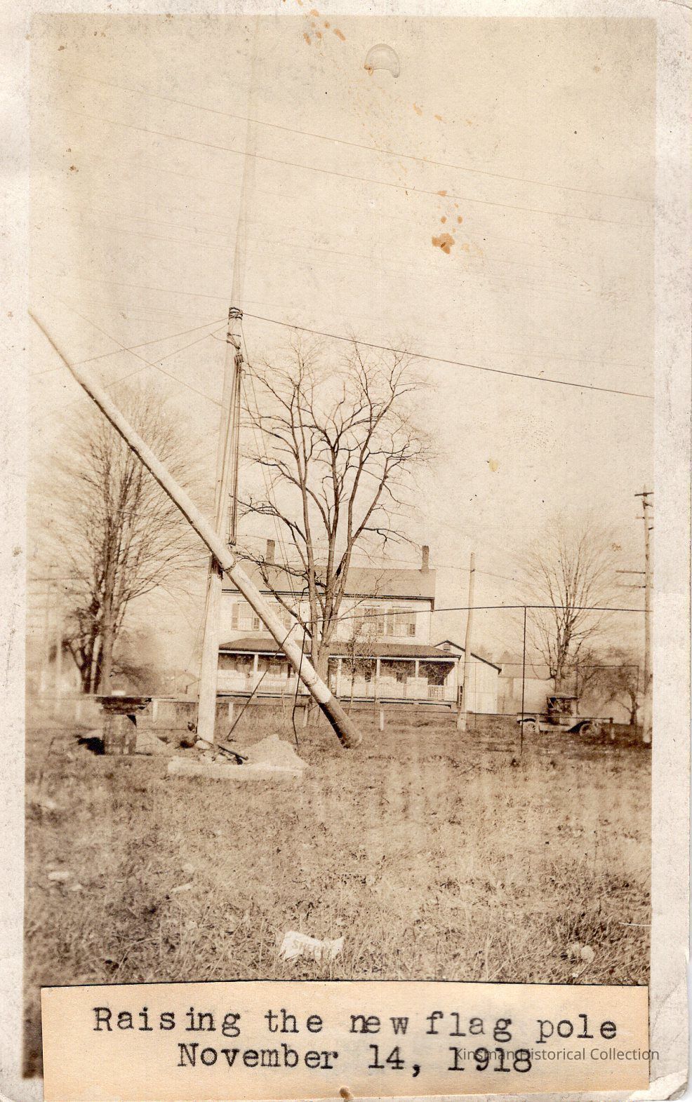 Raising the new flagpole dated November 14, 1918.Collection