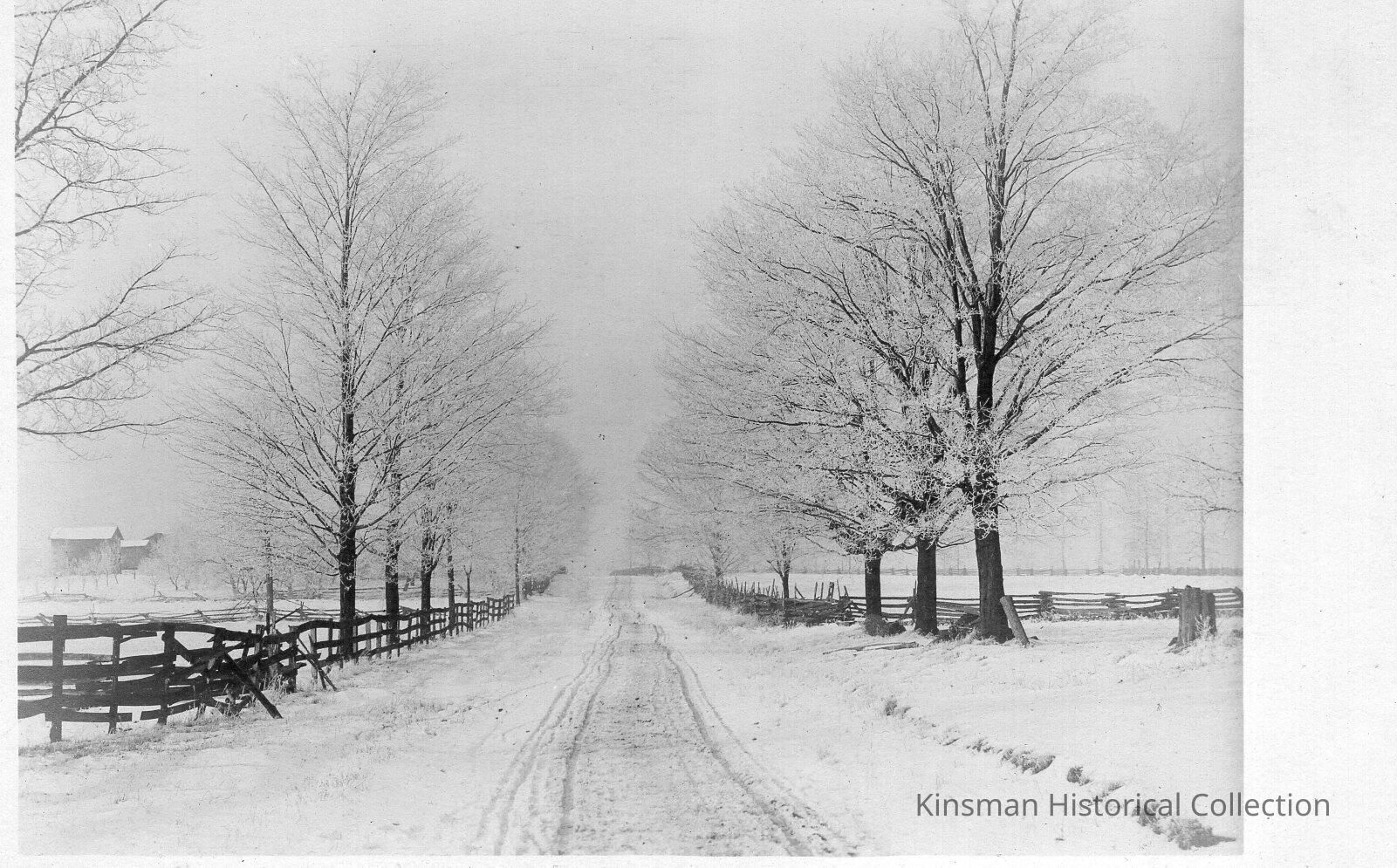 Snowy roadway identified in other photographs as State Street in Kinsman.Cataloged By