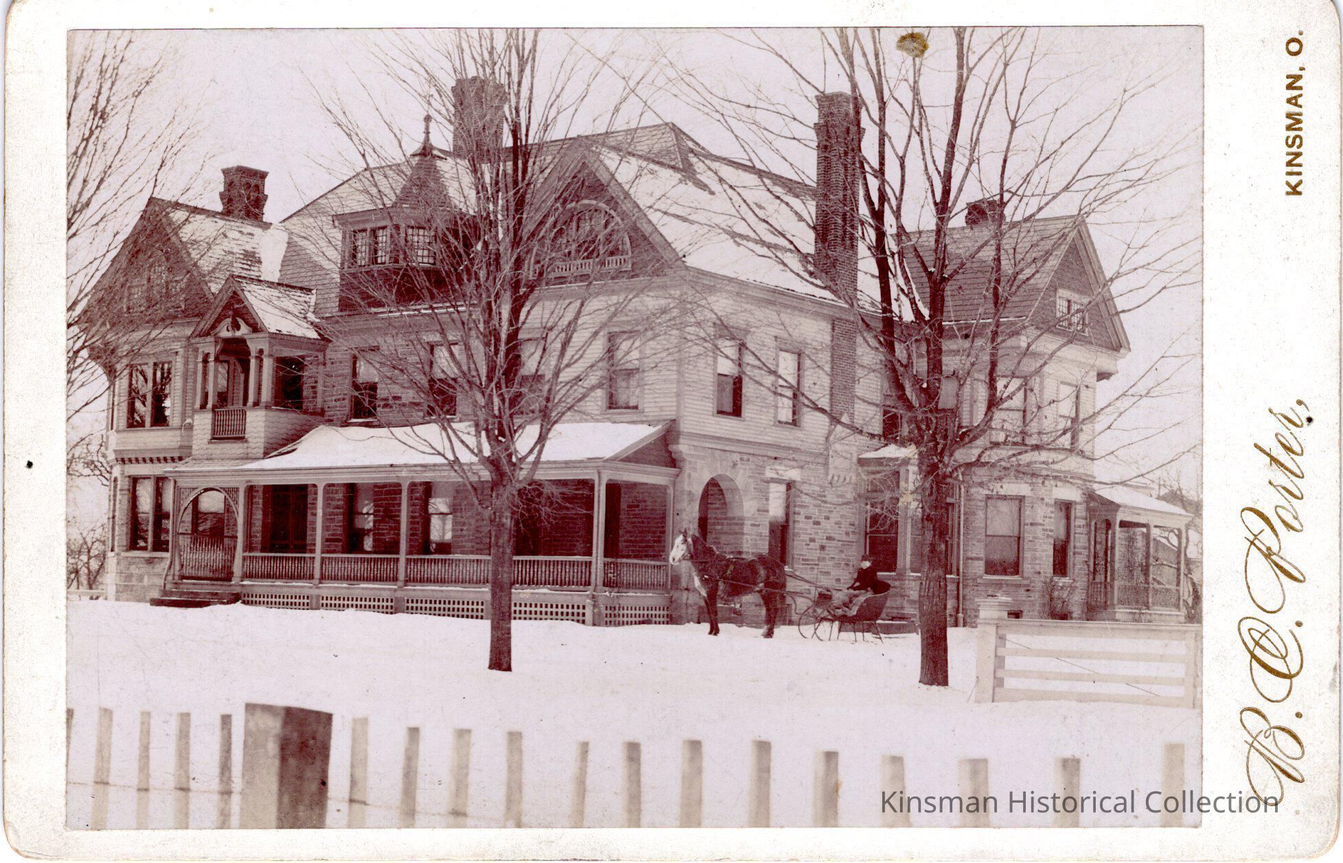 View of McGranahan House in winter with a sleigh by the porch.Collection
