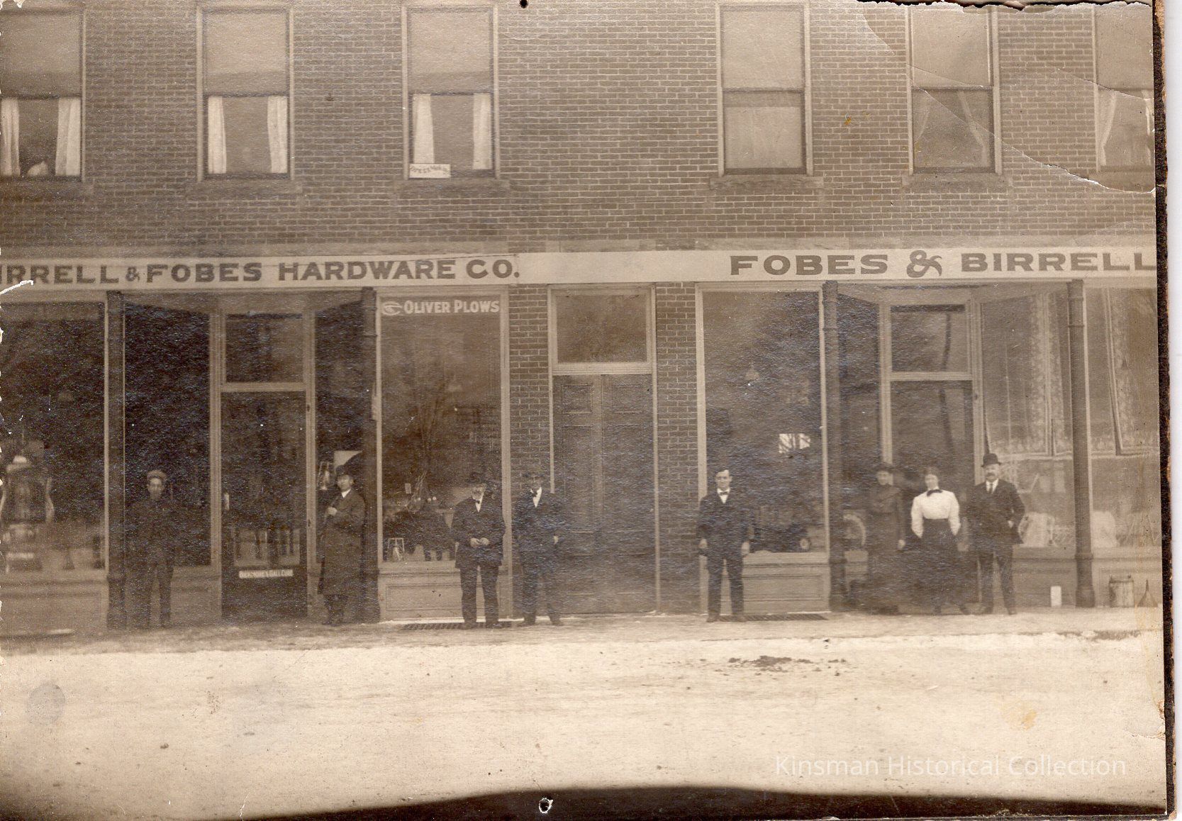 Group of people standing in front of Birrell & Fobes Hardware Co. and Fobes & Birrell.Collection