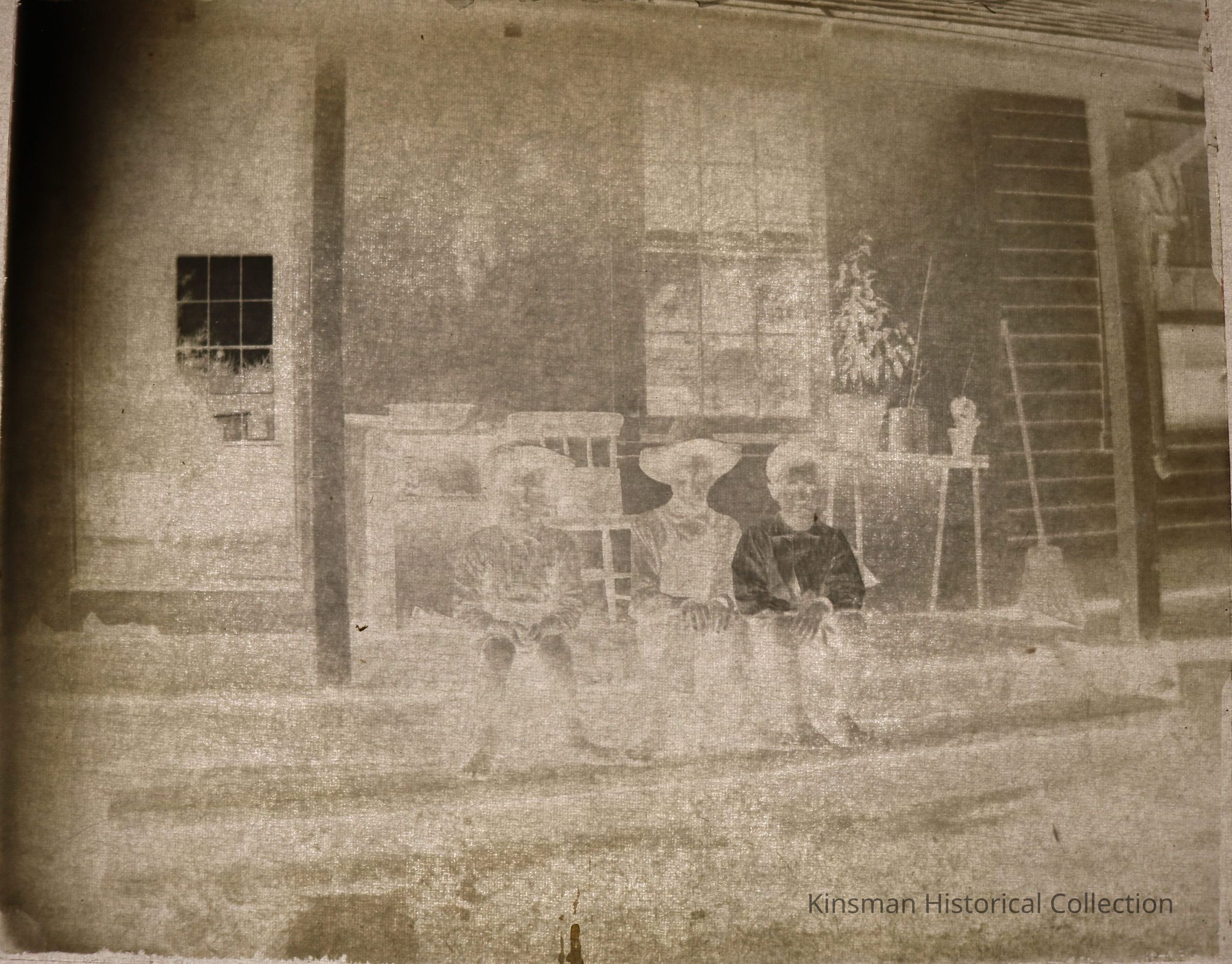 Boys seated on the steps of a covered porch.Collection