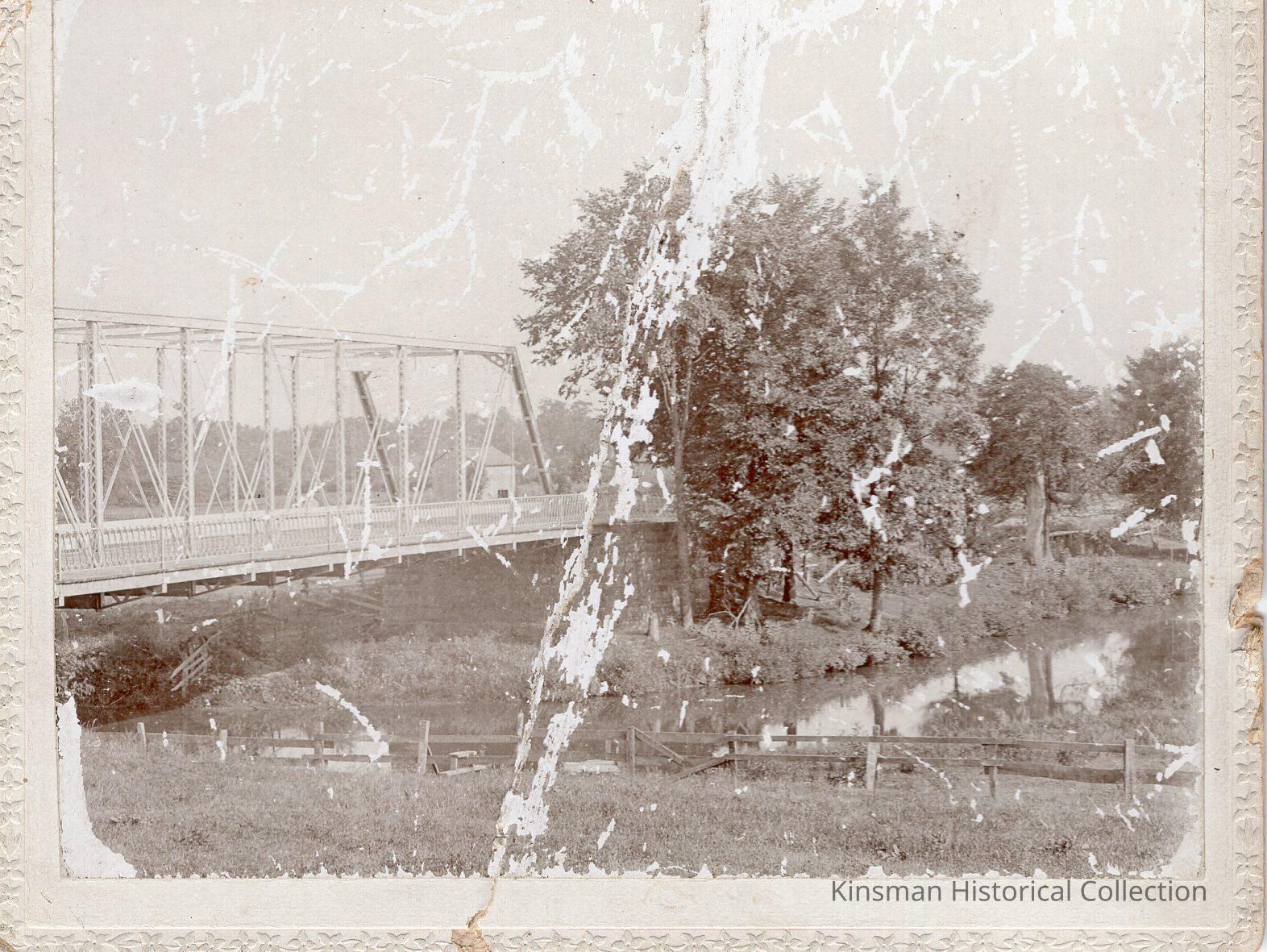Steel Bridge spanning across a creek identified as Route 5.Cataloged By