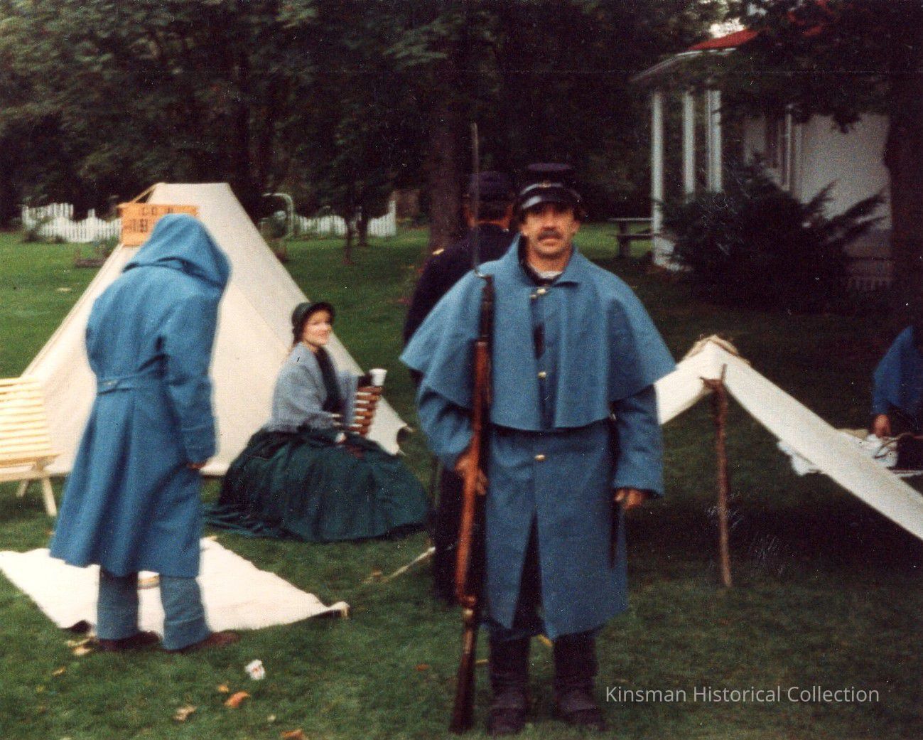Group of people in period outfits with tents showing a recreation of a Civil War encampment. Took place by the Octagon House on Main St. in Kinsman on October 2, 1993.Cataloged By