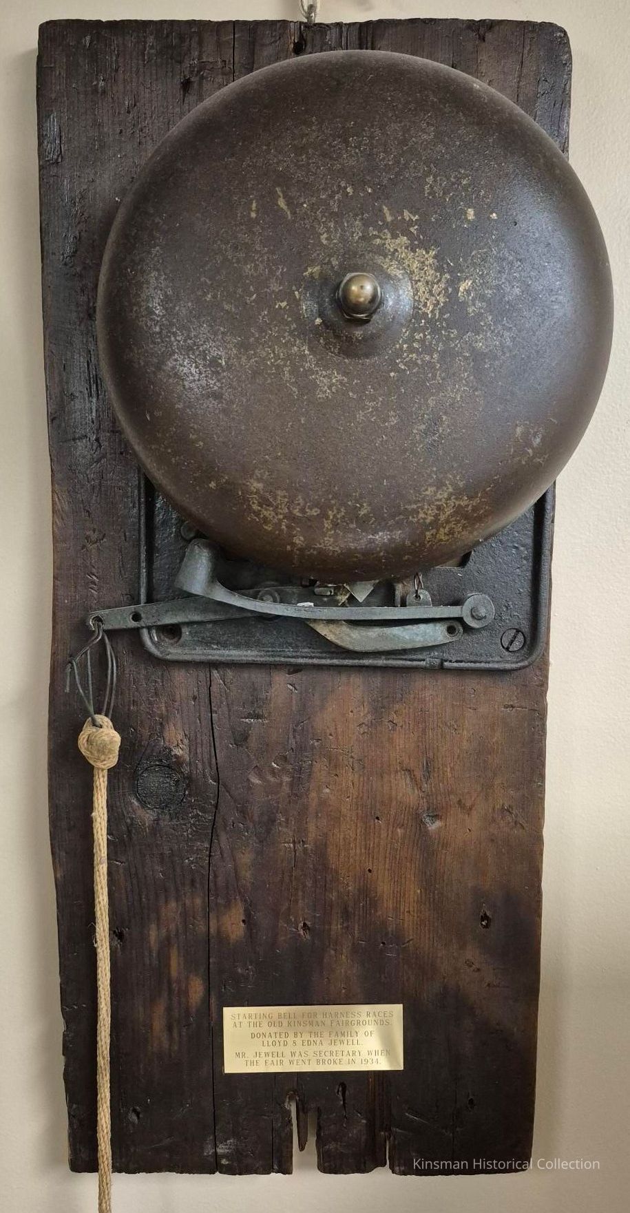 "Starting bell for harness races [at] the old Kinsman Fairgrounds. Donated by the Family of Lloyd & Edna Jewell. Mr. Jewell was secretary when the fair went broke in 1934."Cataloged By