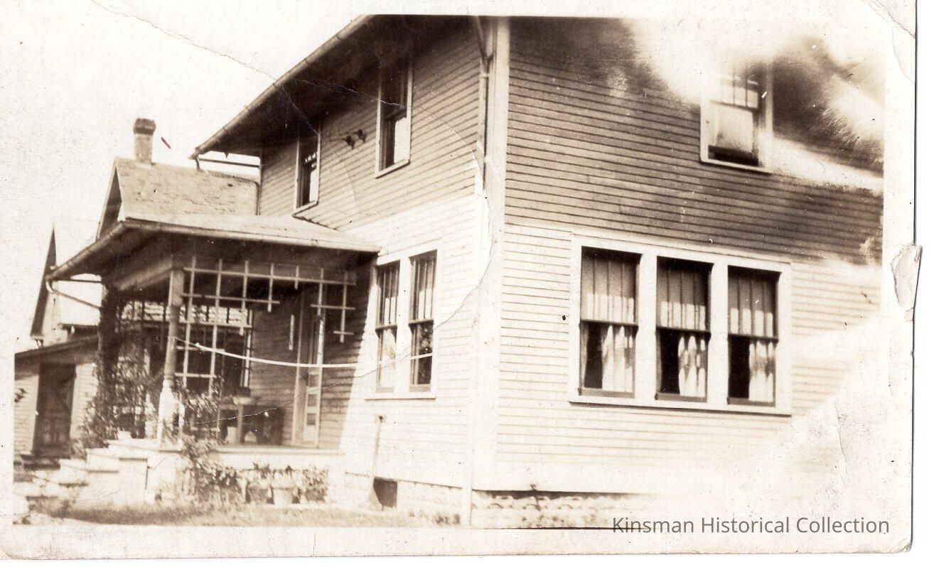 Corner of house. Writing on back "Did you ever see this place? Joe".Collection