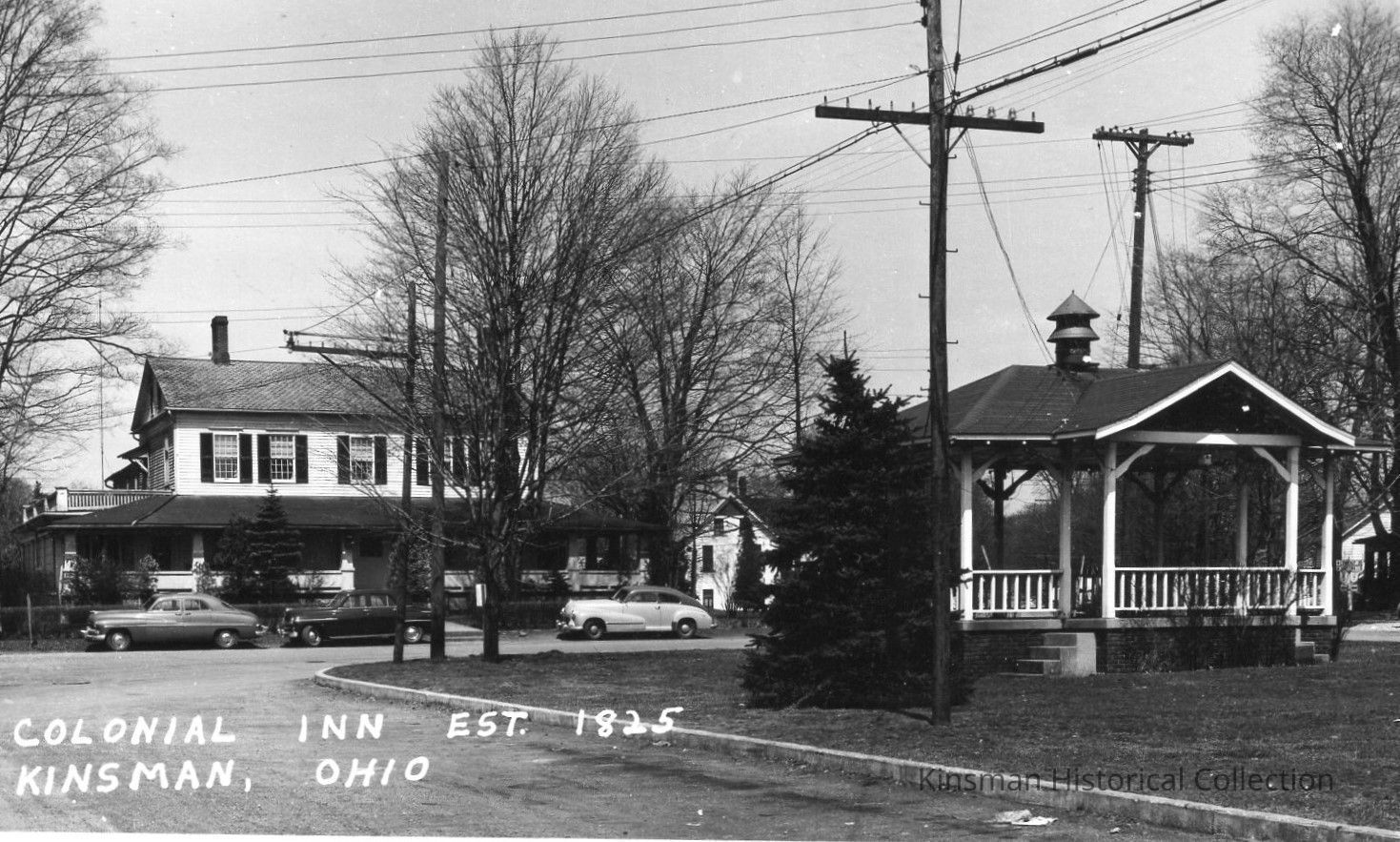 Exterior of the Colonial Inn, built in 1825, taken from across the Square and includes the gazebo in the center of the Square.Collection