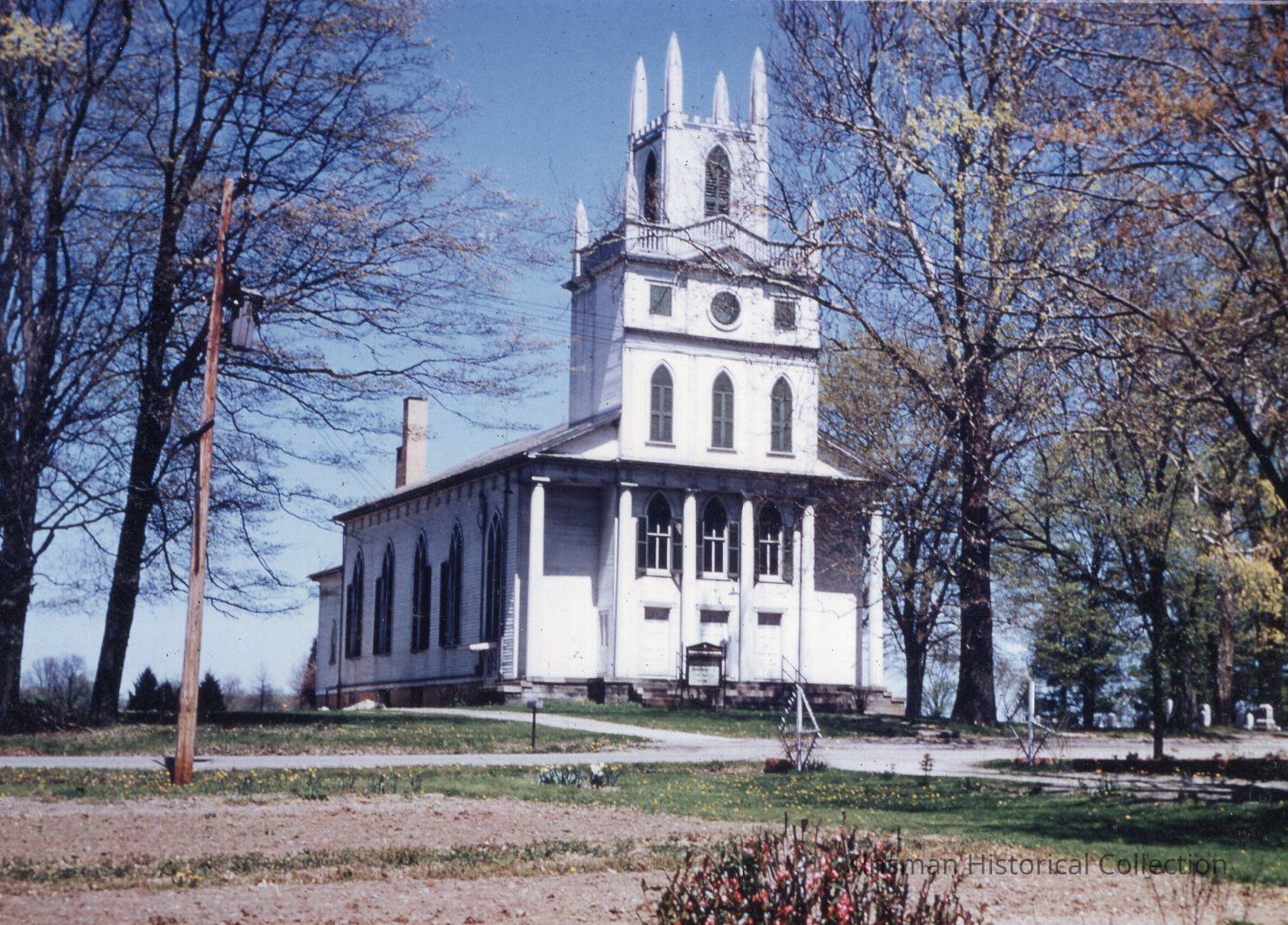 Exterior of Kinsman Presbyterian Church taken from across Church Street.Collection