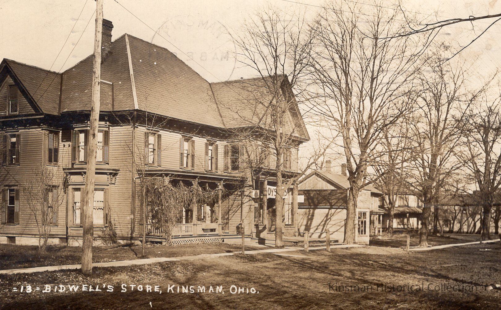 Exterior of Bidwell's Store in Kinsman, Ohio circa 1913.Cataloged By
