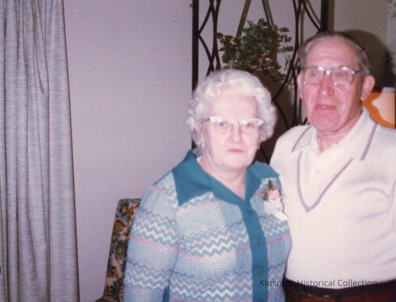 Vivian (Riggs) and David W. Braden, both Kinsman graduates. Vivian lived in the big house on right turning into the Lakelands. Her father built the Lakelands Golf Course. Bradens lived north of Kinsman on west side of road where Mary Lou Bingham Kidwell lives. Father, David Braden was a housepainter and hung wallpaper.Cataloged By