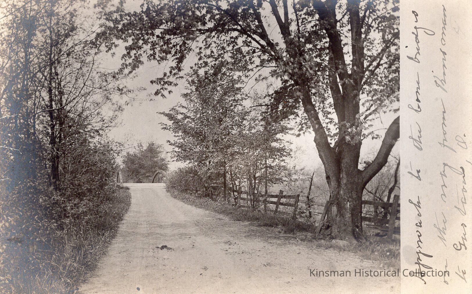 Roadway approaching the "cone bridge" on the way from Kinsman to Gustavus, Ohio, in 1908.Cataloged By
