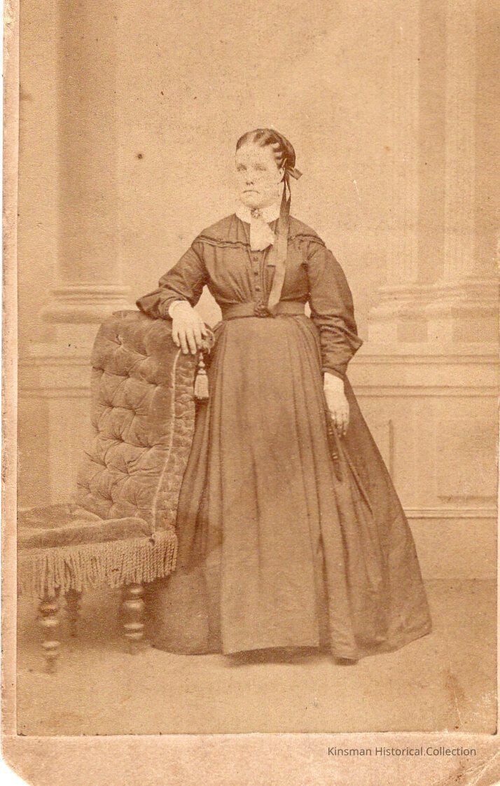 Standing portrait by cushioned chair of "Mother Martha Brindley".Cataloged By