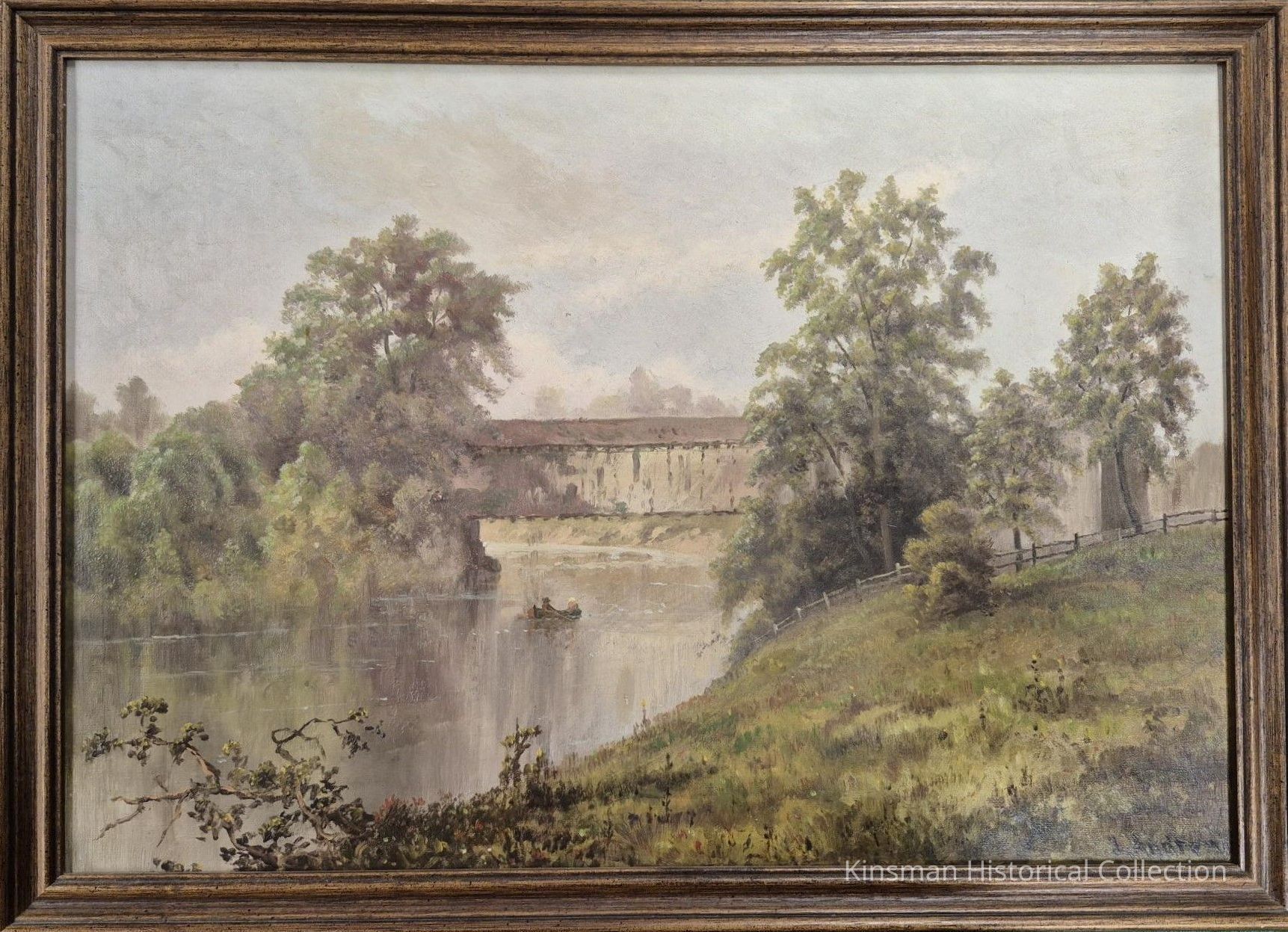 Painting of Kinsman covered bridge by L. Andrews.Cataloged By