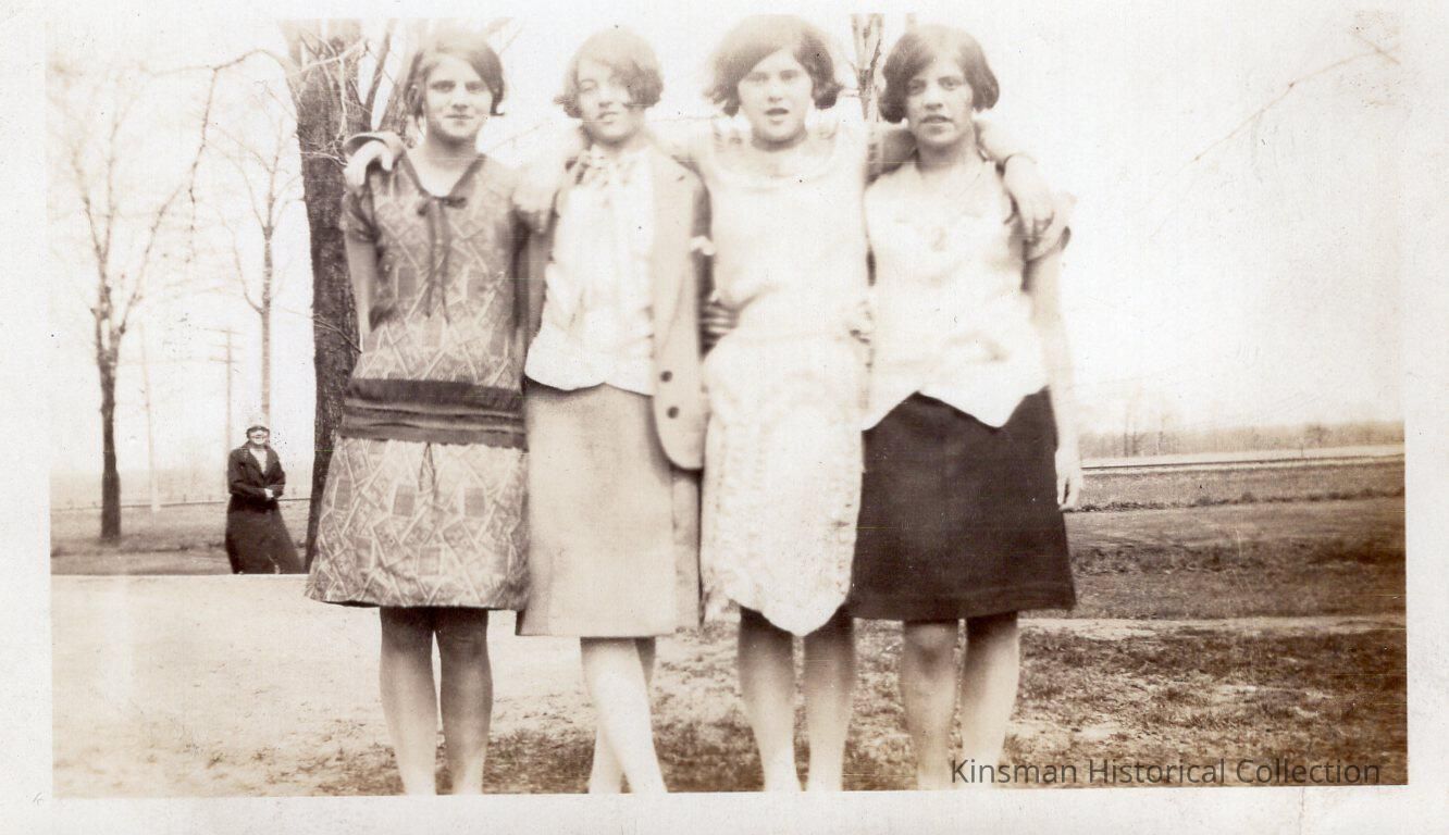 Portrait of four women standing together and one woman in the background.Collection