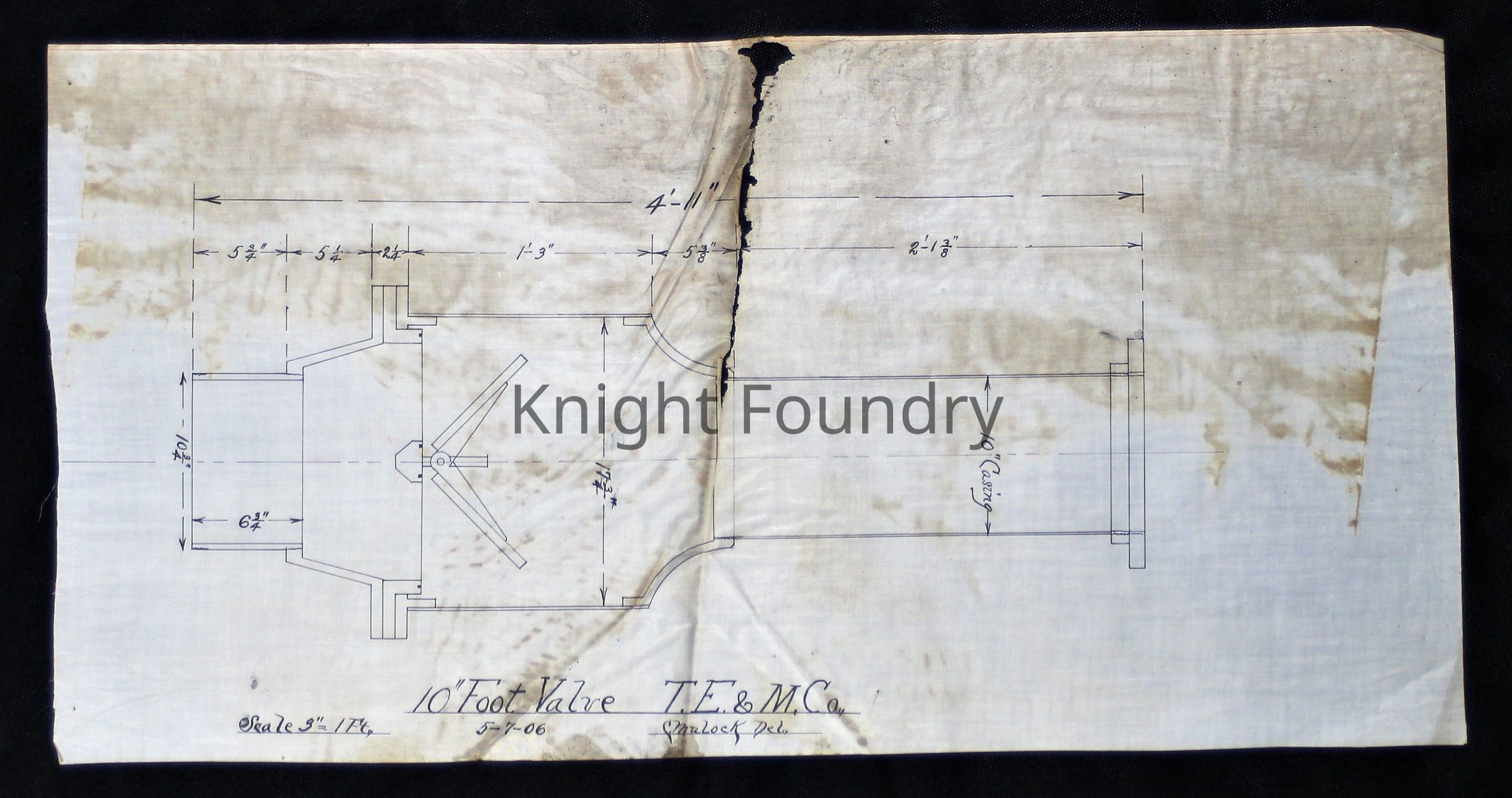 A drawing of a 10 foot valve for the T.E. & M. Company.Collection