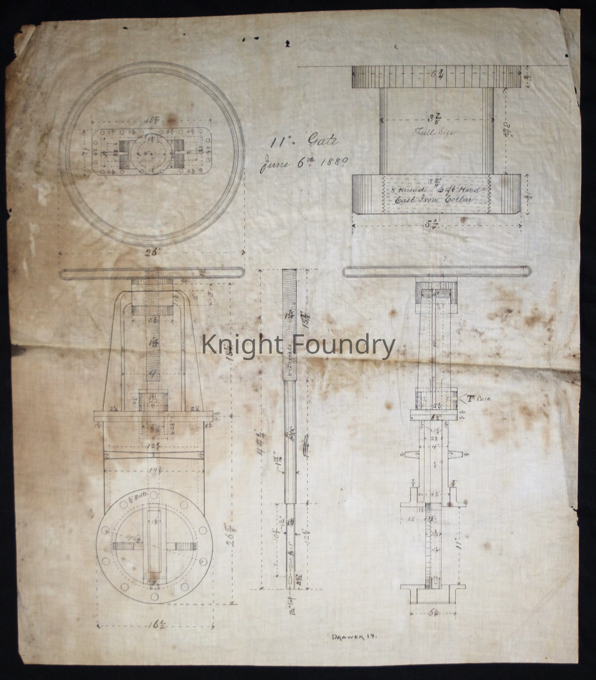 Drawing of the parts needed for an 11 inch gate valve. The drawing is marked drawer 14.Collection