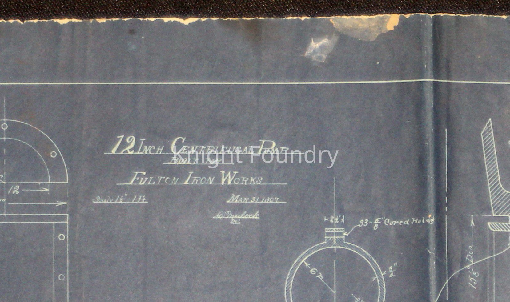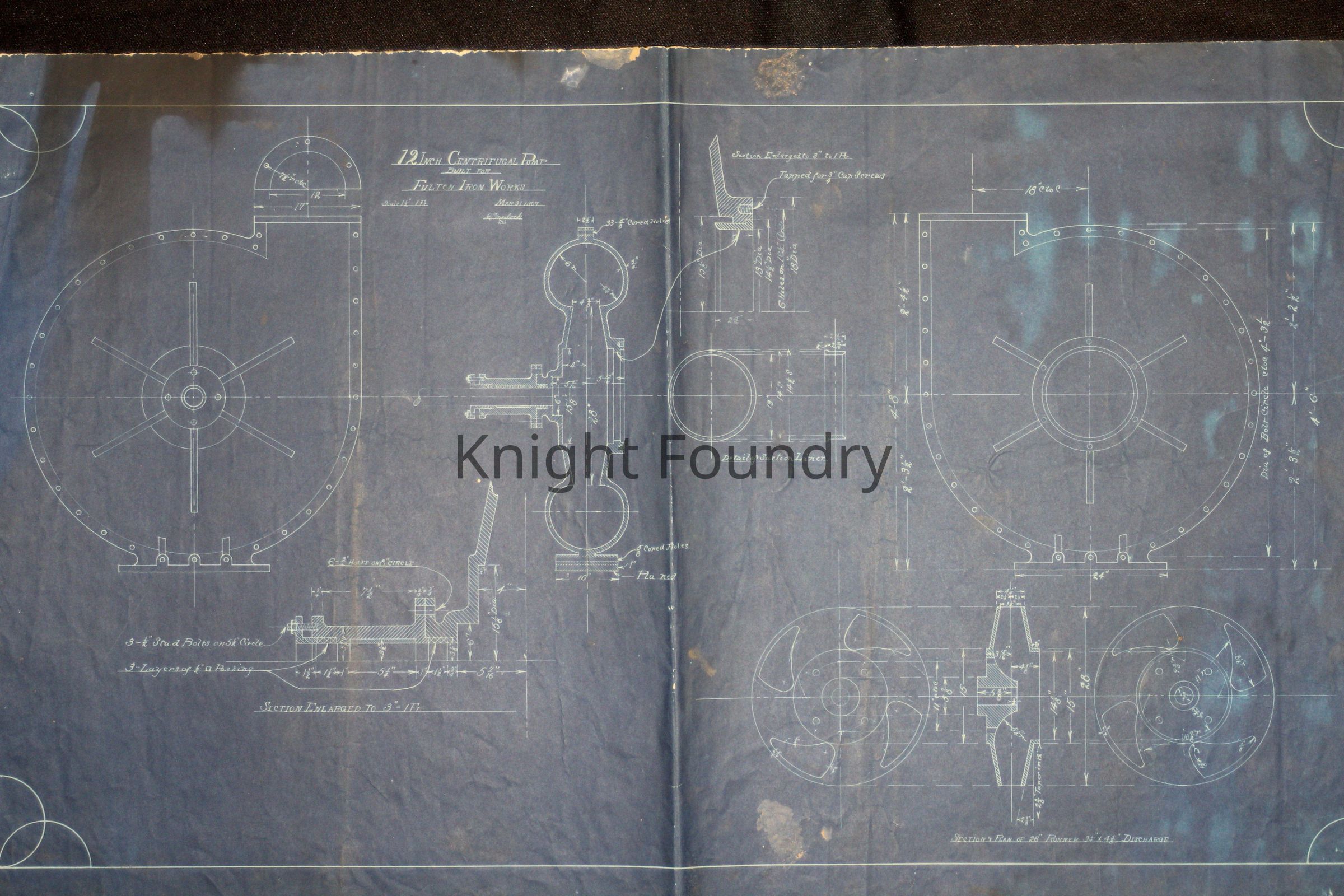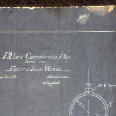Blueprint of 12 inch centrifugal pump built for Fulton Iron Works