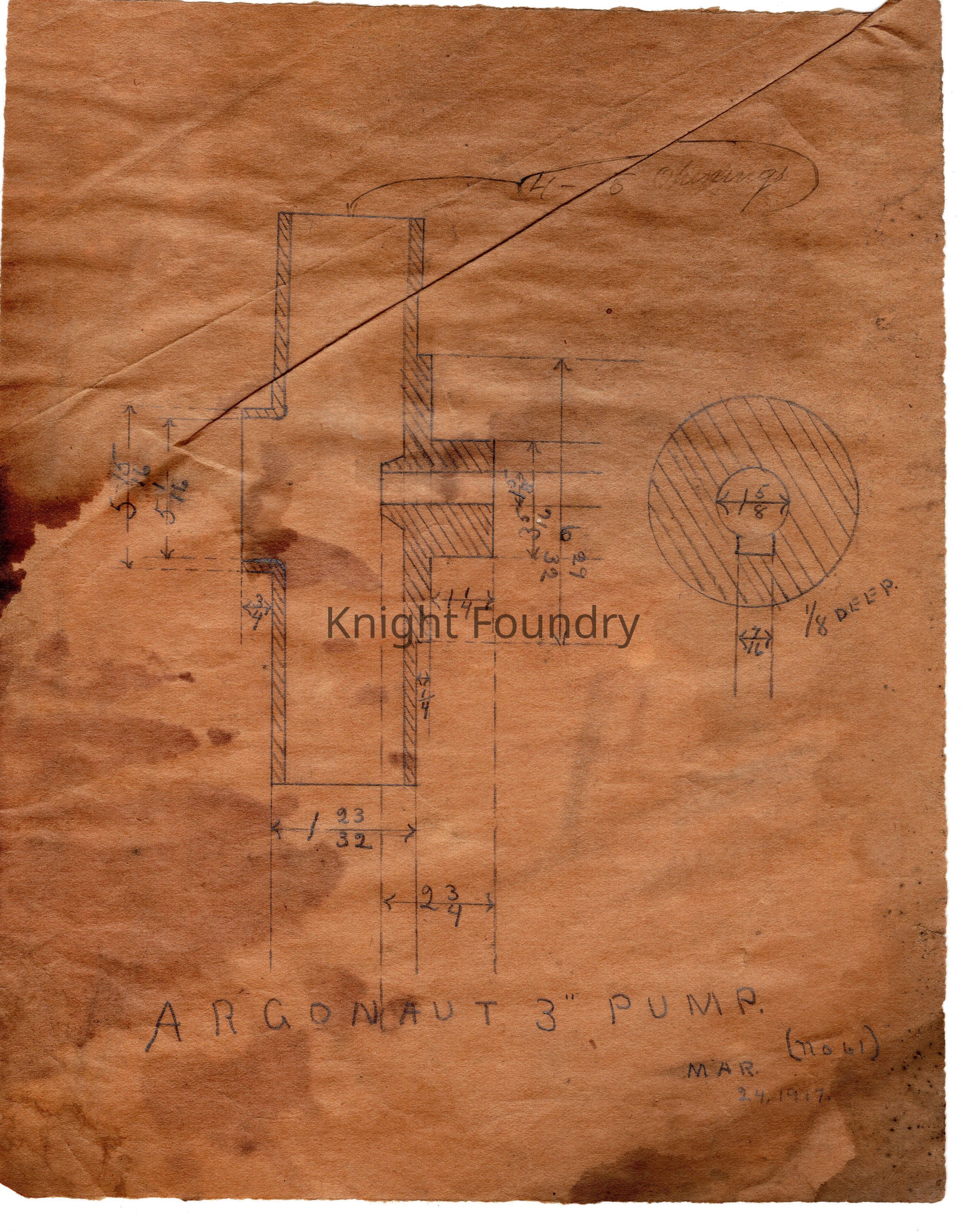 Drawing of a 3 inch pump part for the Argonaut Mine.Collection
