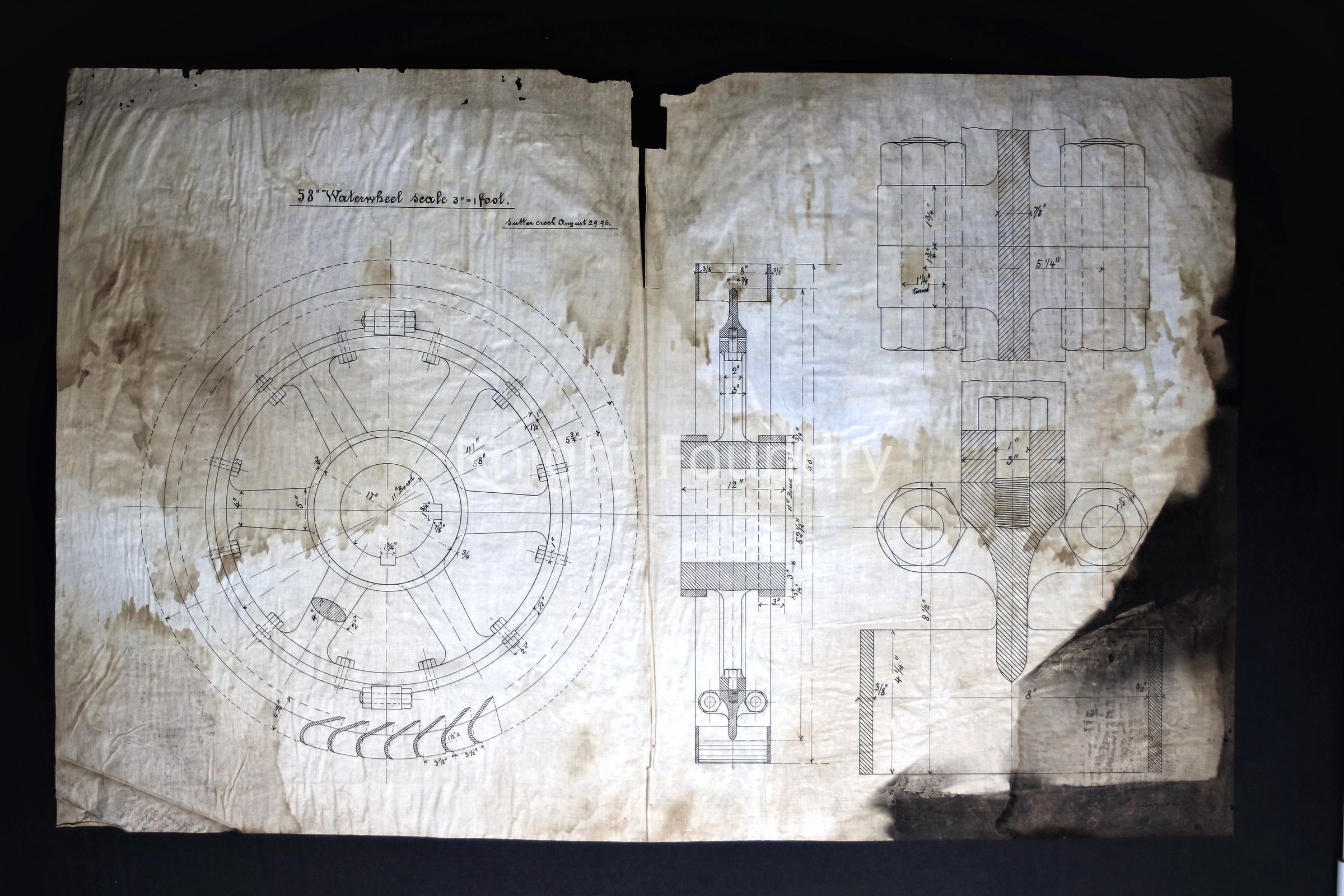 A drawing of a 58 inch waterwheel. The drawing is dared August 29, 1896 and is labeled drawer 20.