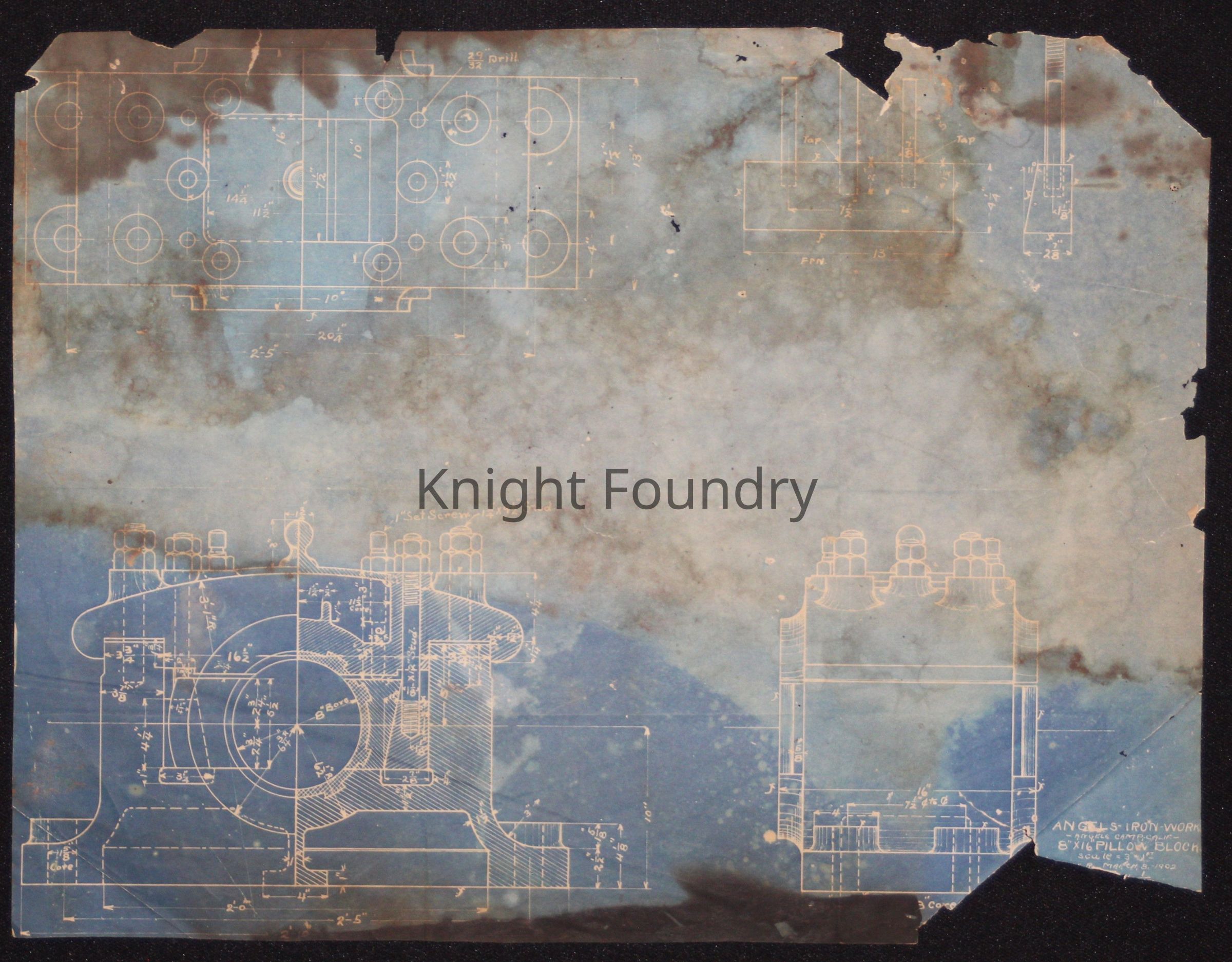 Blueprint of 8" x 16" pillow block. Angels Iron Works, Angels Camp, Calif.Collection