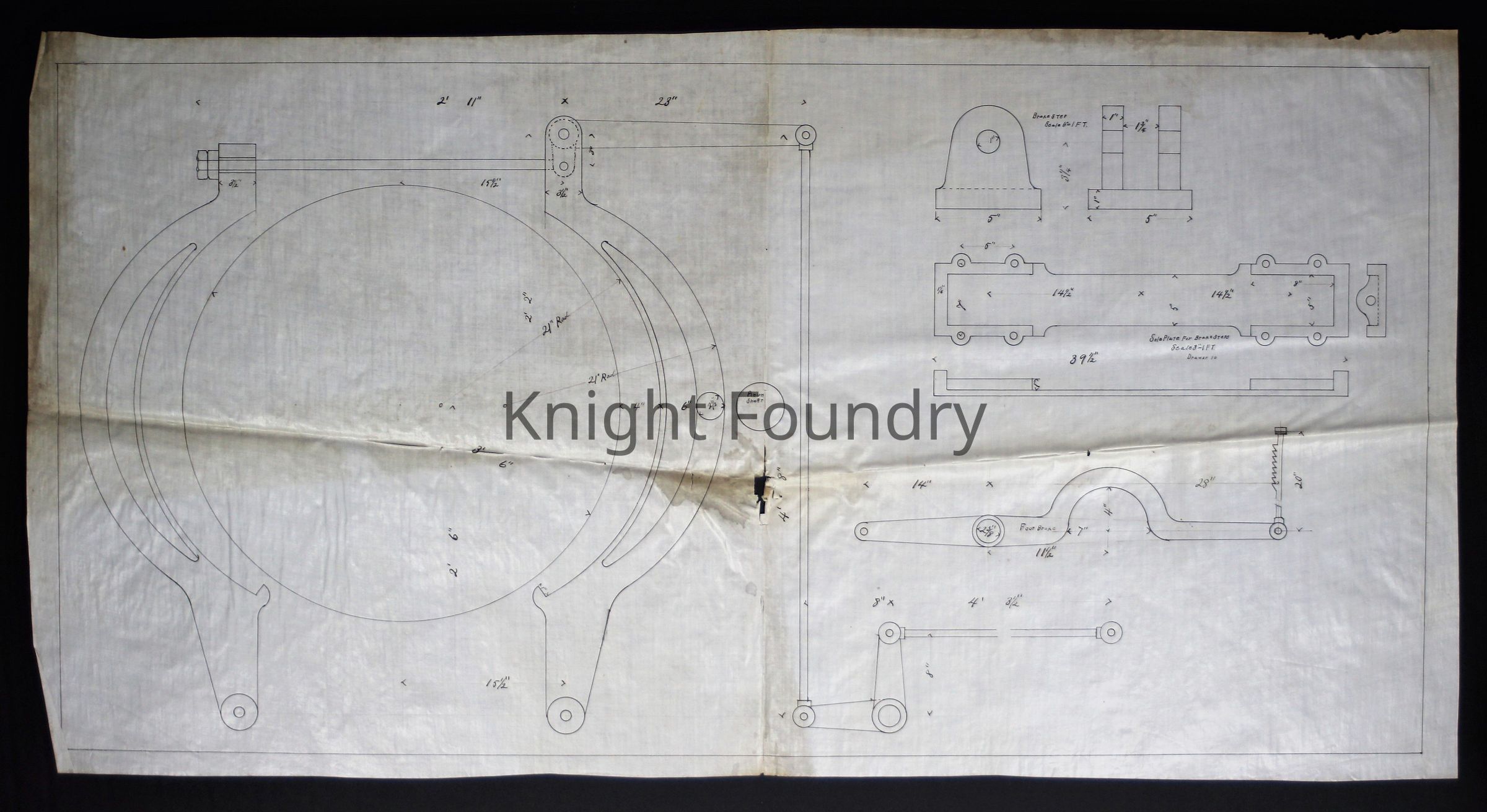 A drawing of a brake with details of sole plate, brake steps, and foot brake. Drawing states Drawer 10Collection