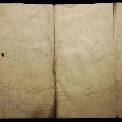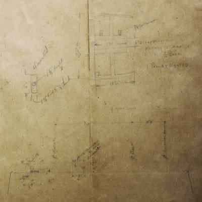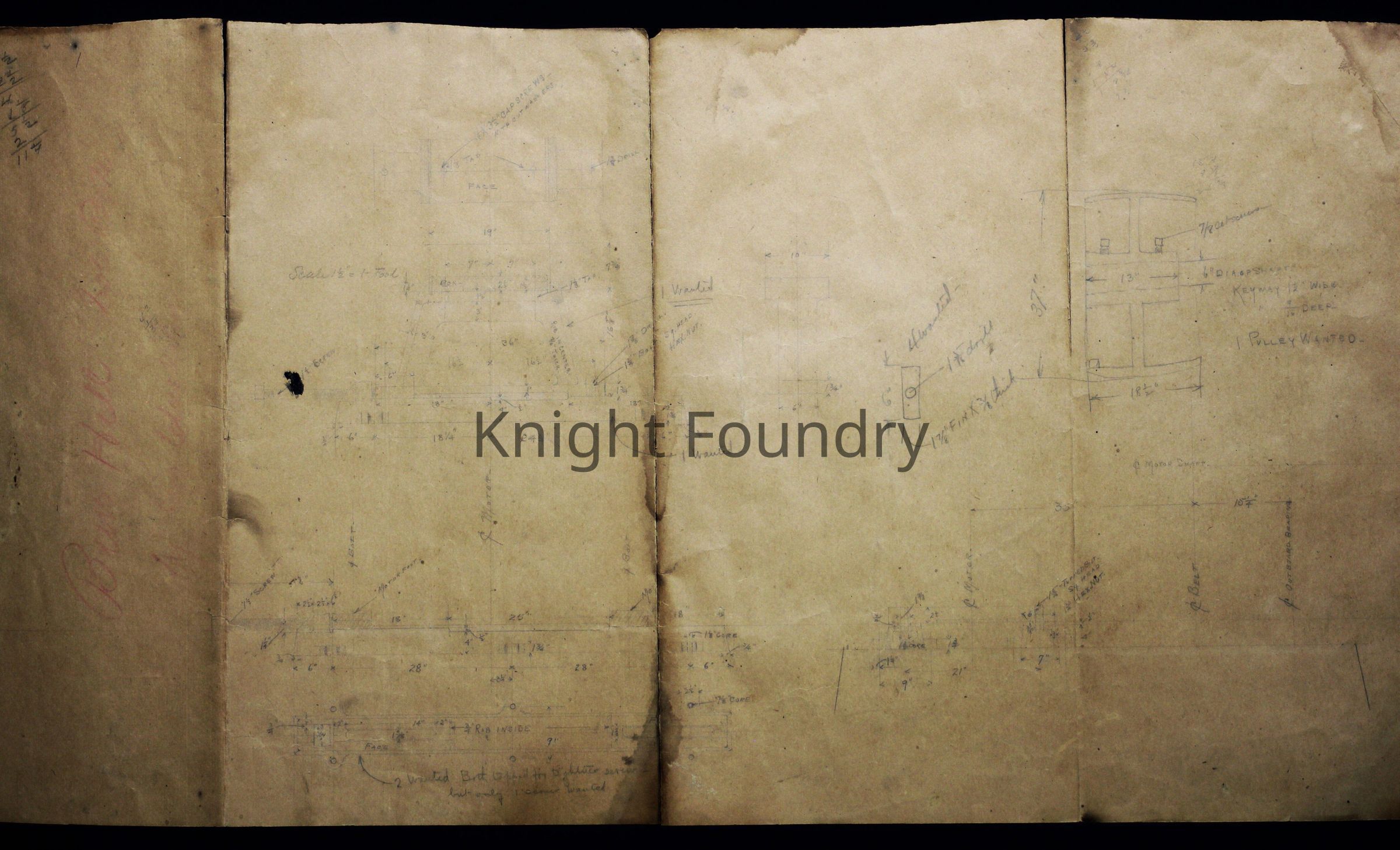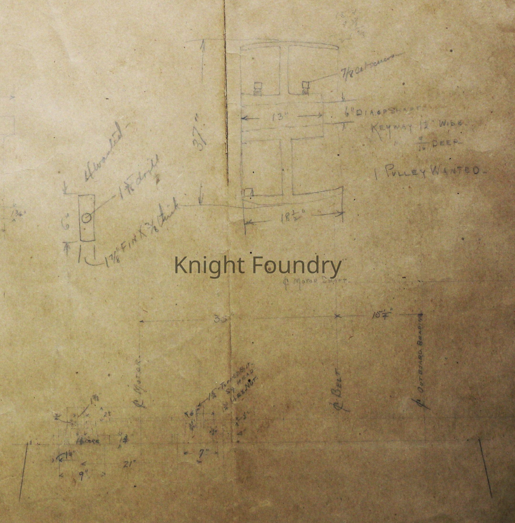 Large drawing showing 2 views of a sole plate and a pulley for the Bunker Hill Mine. The text is very faint.Artwork Details