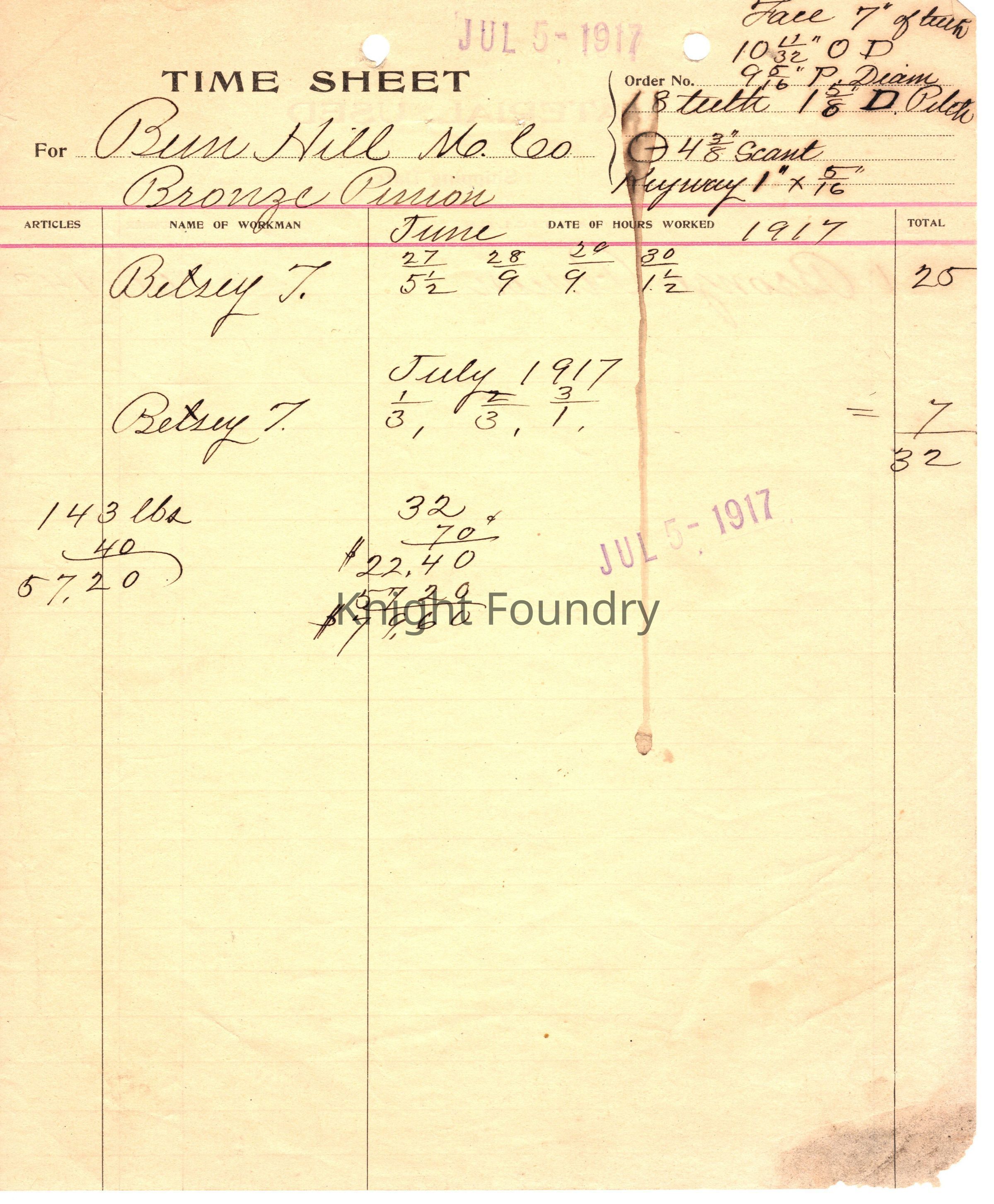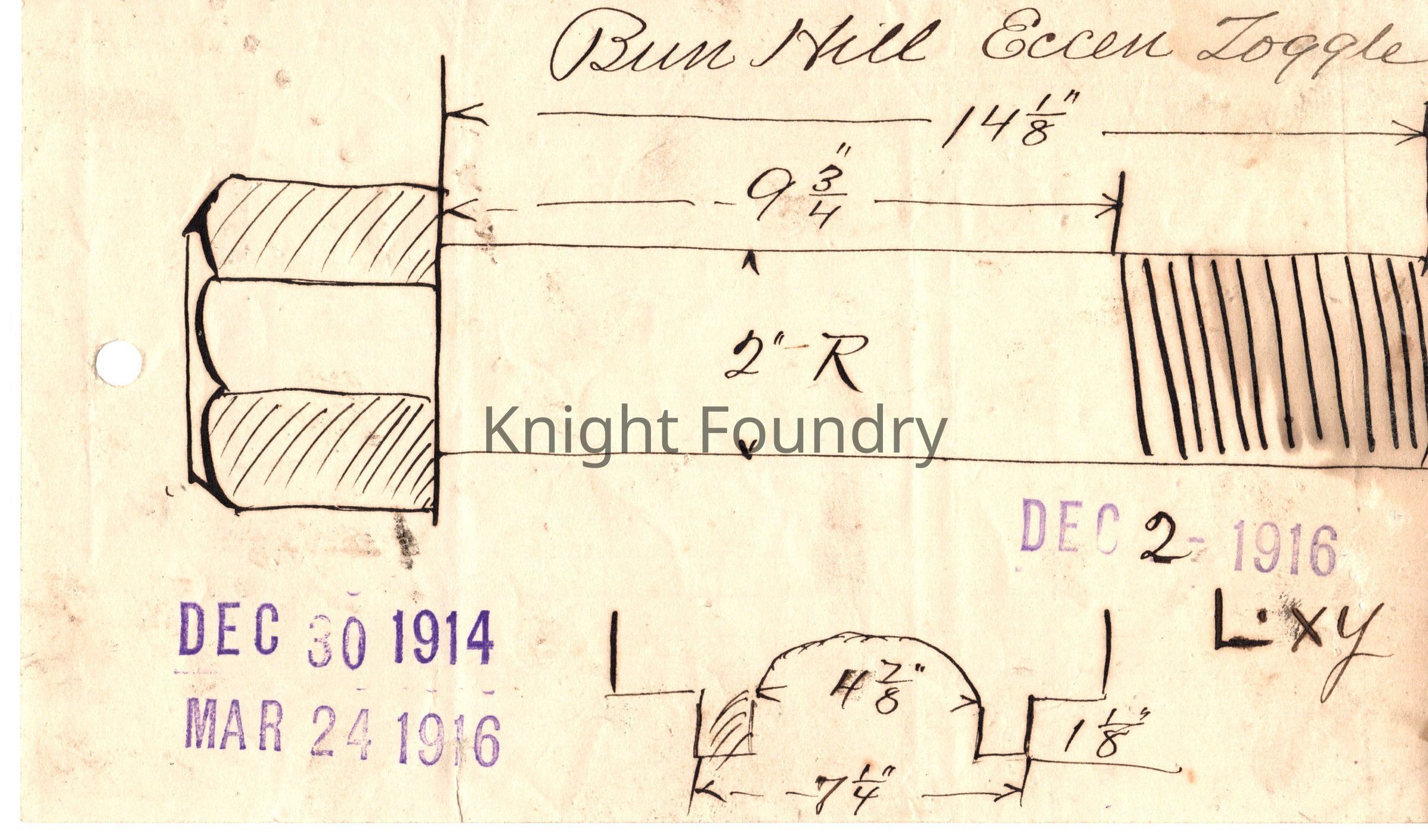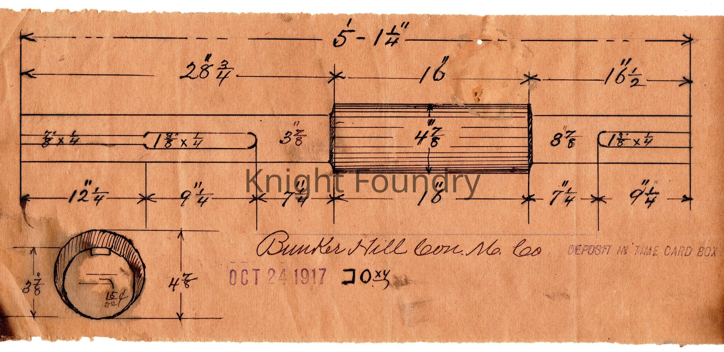 Seven small drawings for the Bunker Hill Consolidated Mining Co. including steel boss, eccentric toggle, eccentric shaft and time sheet.Collection