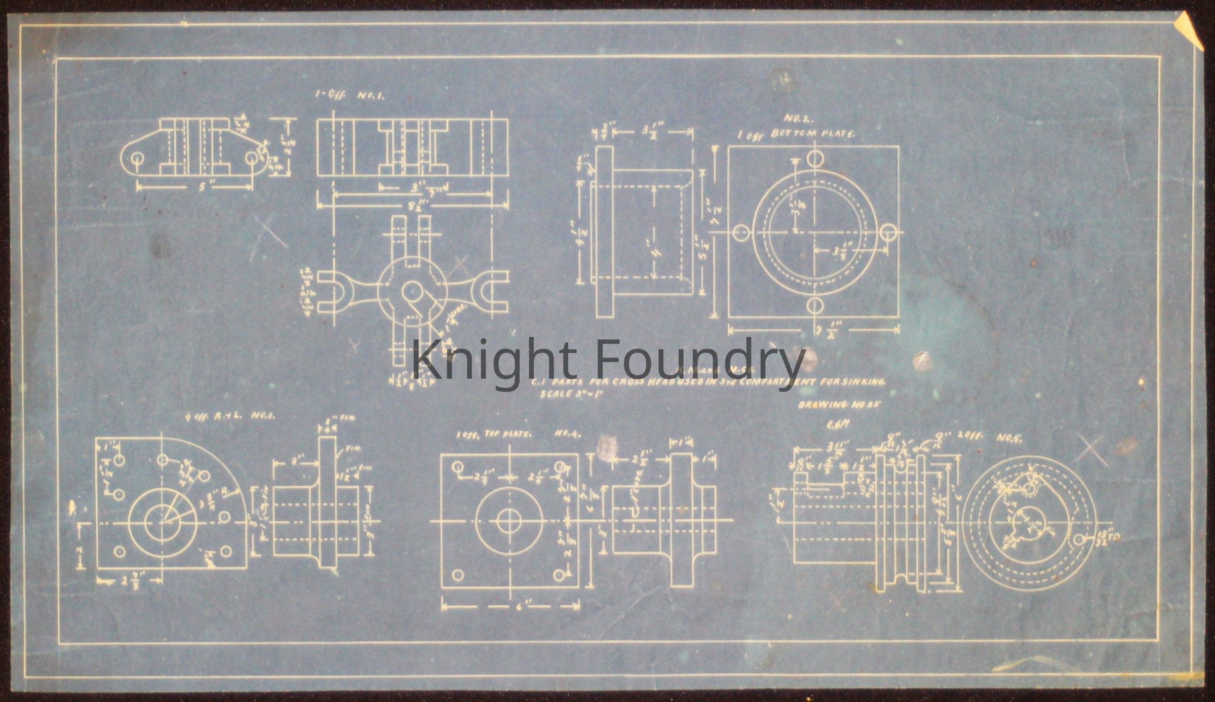 Cast iron parts for cross head used in 3rd compartment for sinking. Drawing No 35