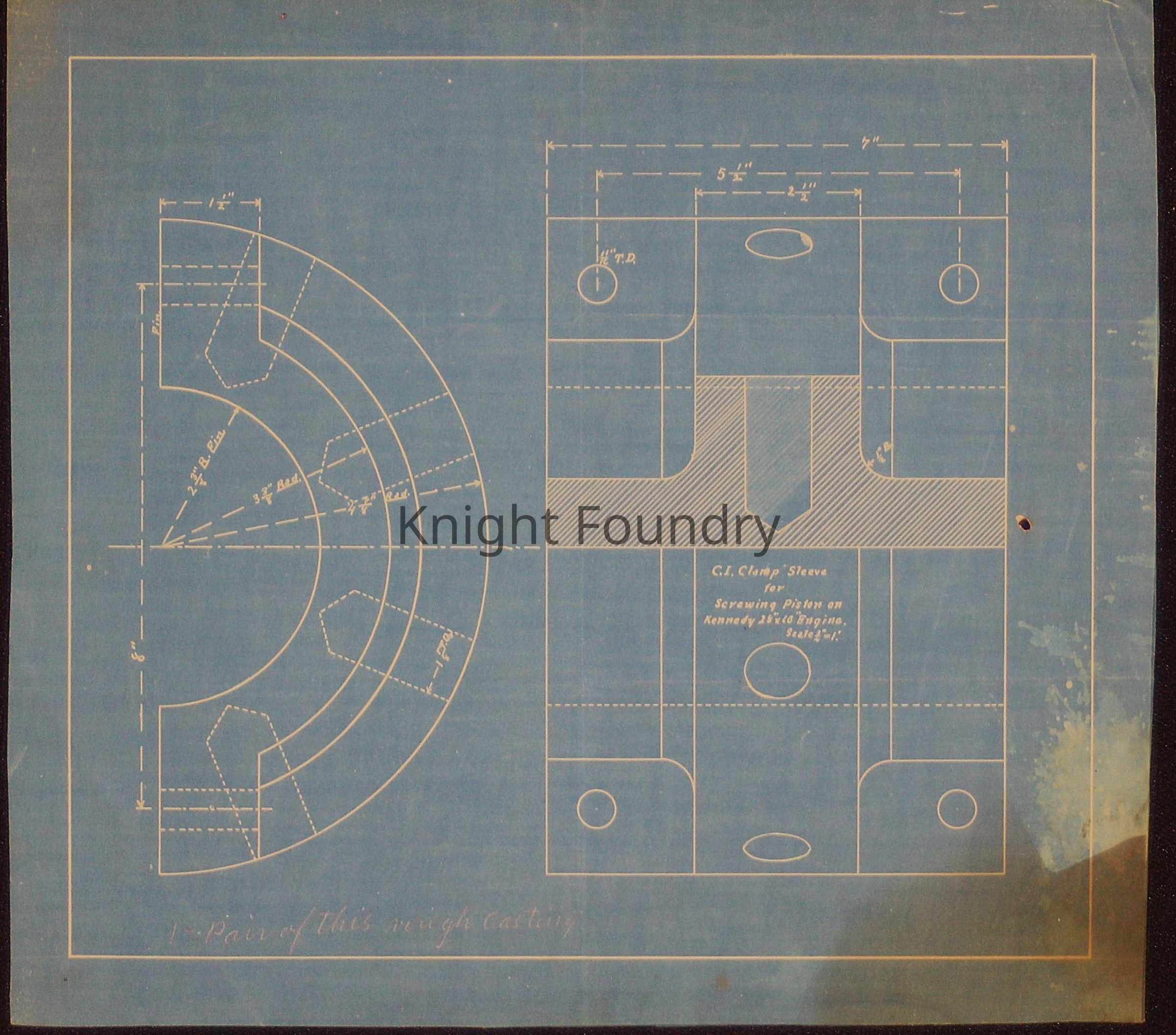 Blueprint of cast iron clamp sleeve fir Screwing piston on Kennedy 28" x 10"