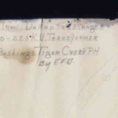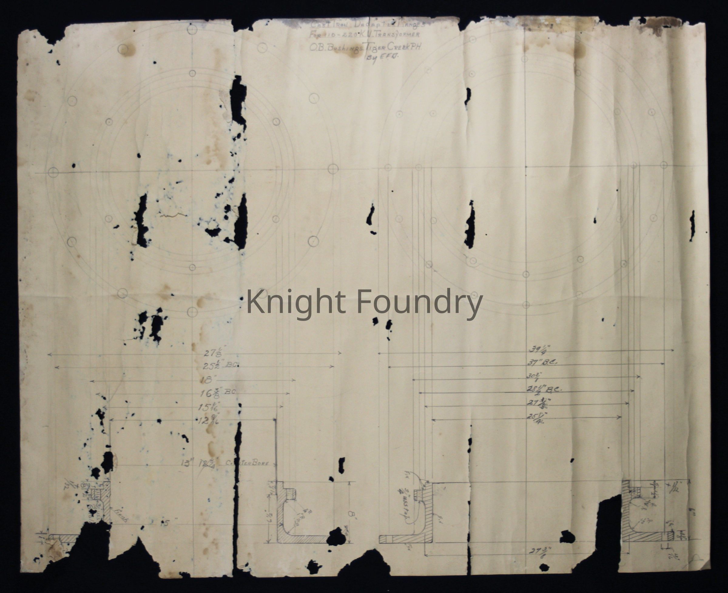 Drawing of cast Iron dadapter flanges for a 110-220 K.V. transformer. O.B. Bushings, Tiger Creek Power HouseCollection