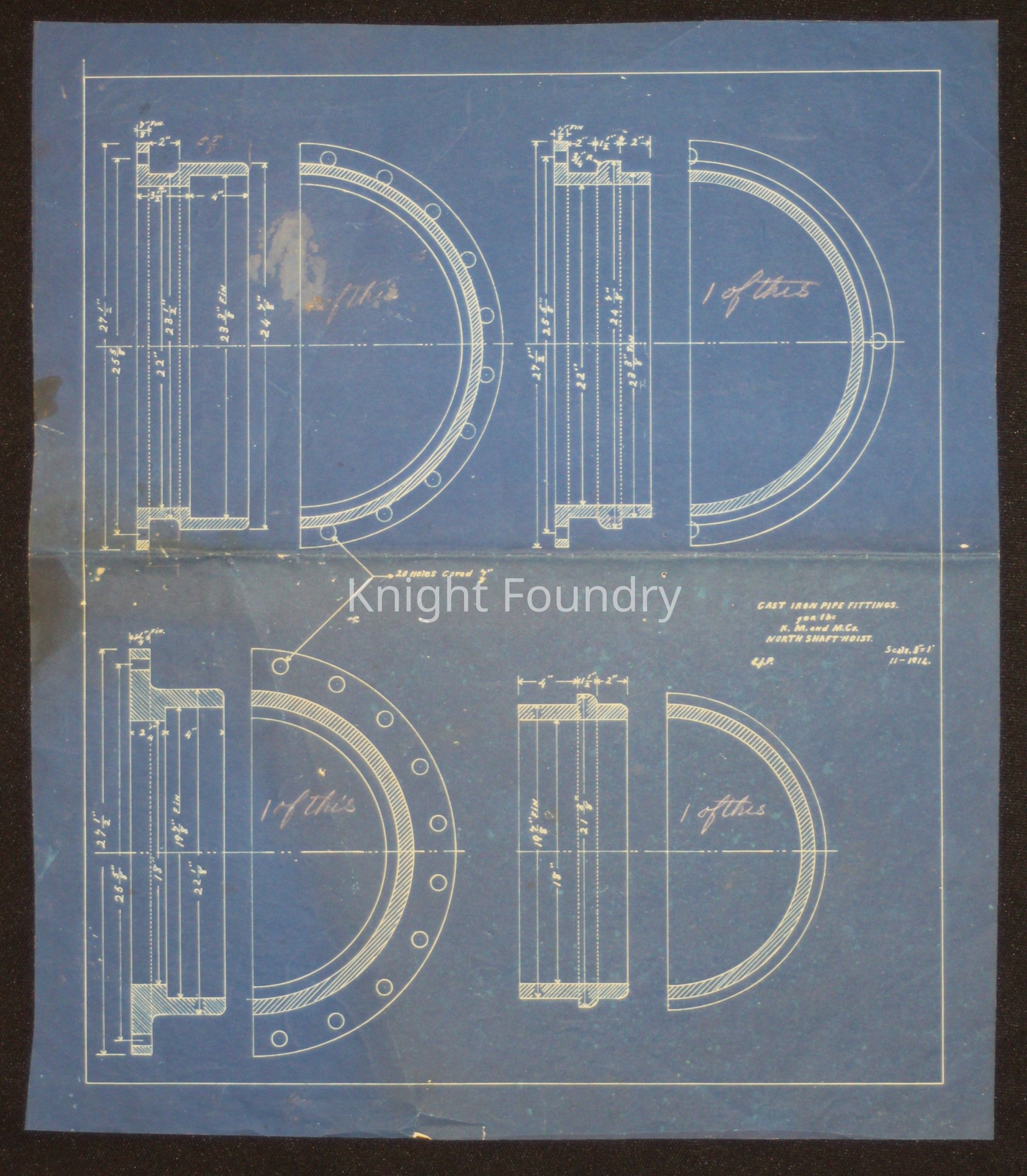 Blueprint of cast iron pipe fittings for the K. M. and M. Co., north shaft hoist