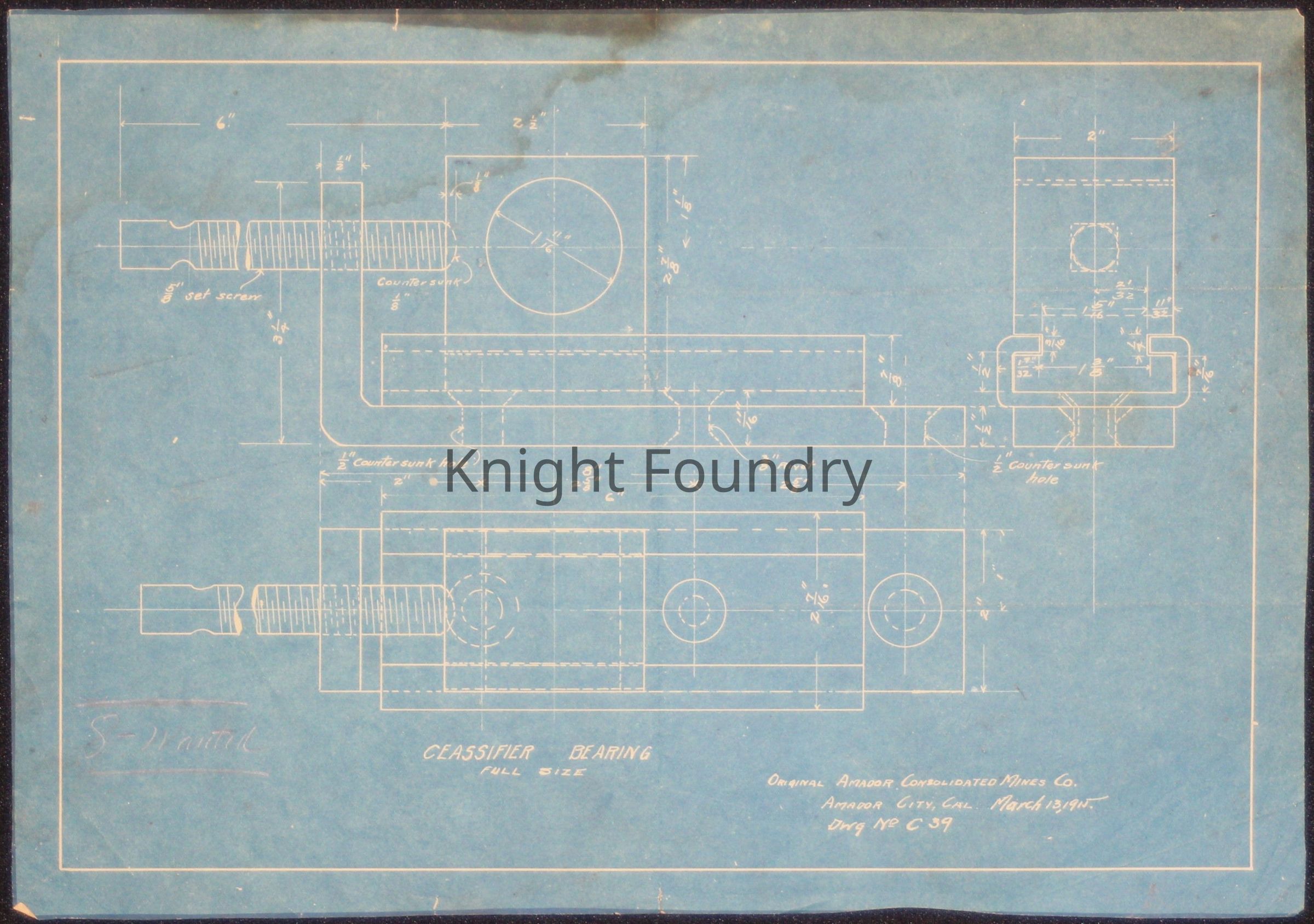 Blueprint of classifier bearing for Original Amador Consolidated Mines Co. Drawing No C 39 "8 wanted"