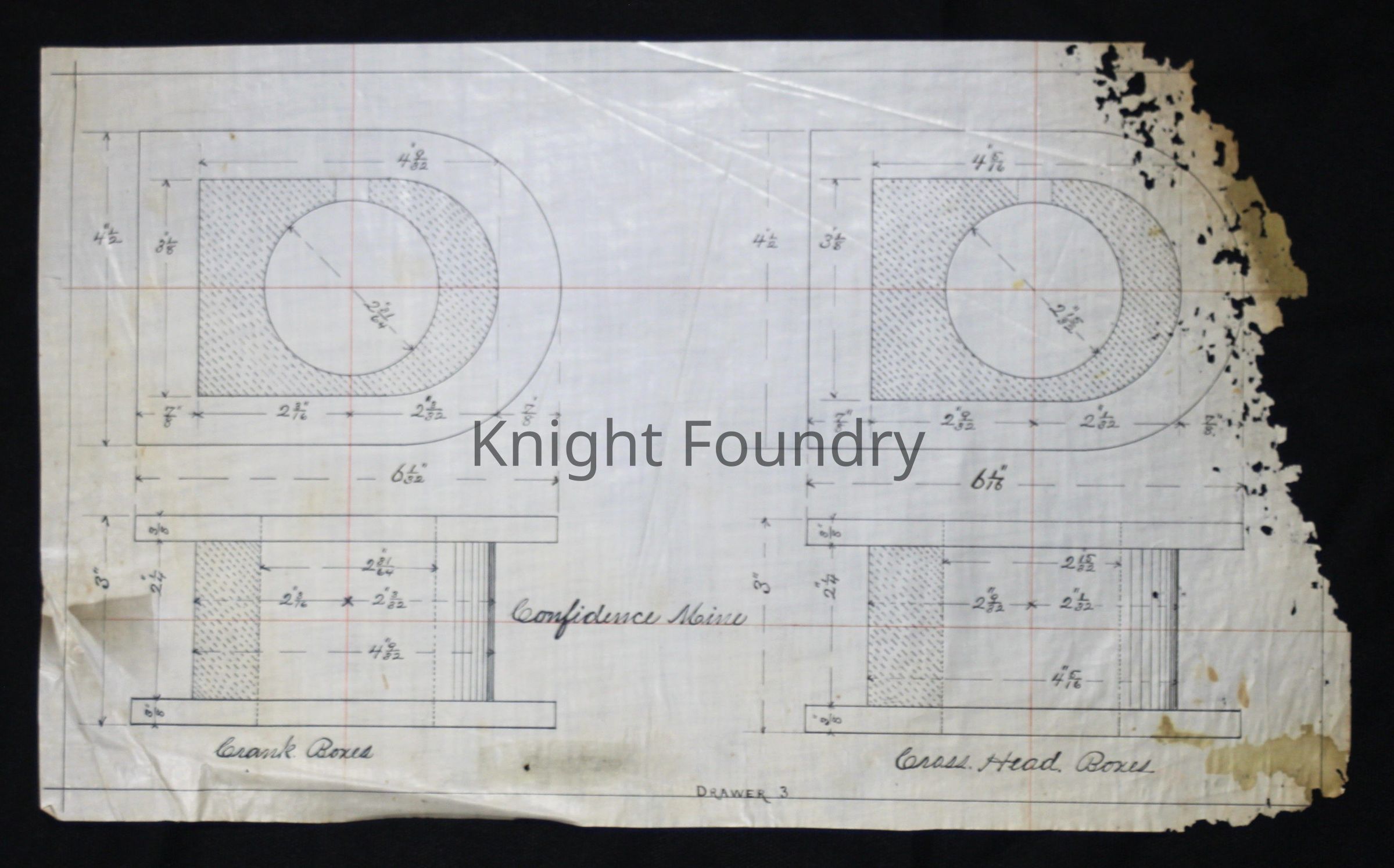 Drawing of cross head boxes and crank boxes for the Confidence Mine. Drawing notes Drawer 3.Collection