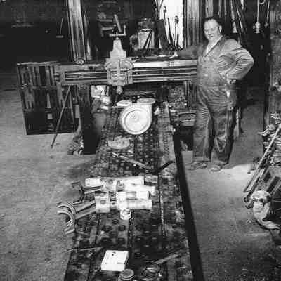 Over 1000 time cards detaining time worked on projects such as planing rails, boring parts for prune shaker, taking old pipe apart, taking pulleys off shaft Ione Brick, helping on bank PG&E, boring keysetting and fitting keys in sprockets for Cedar Mill, repairing lathe. Note charring from 1936 fire.Copyright
