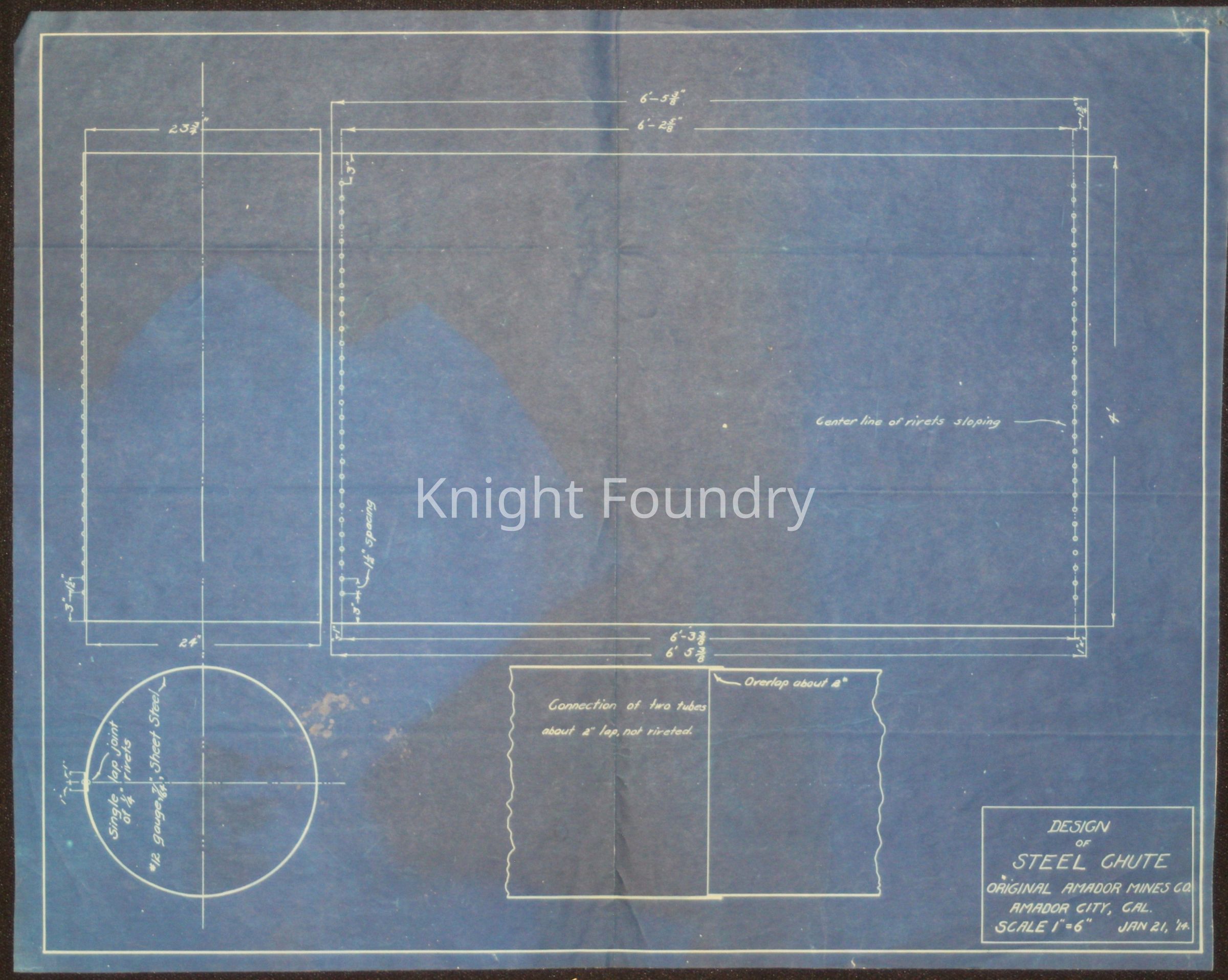 Blueprint of design of steel chute for Original Amador Mines Co.