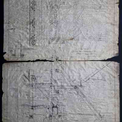 Drawing of a battery frame for a 20 stamp mill with details. The drawing is marked drawer 5.Collection