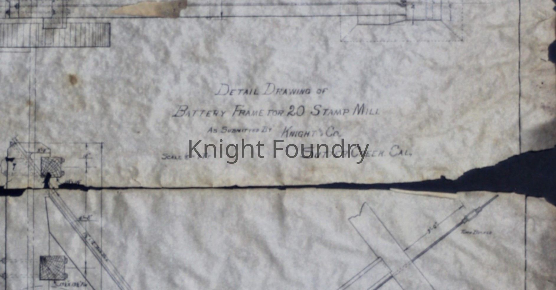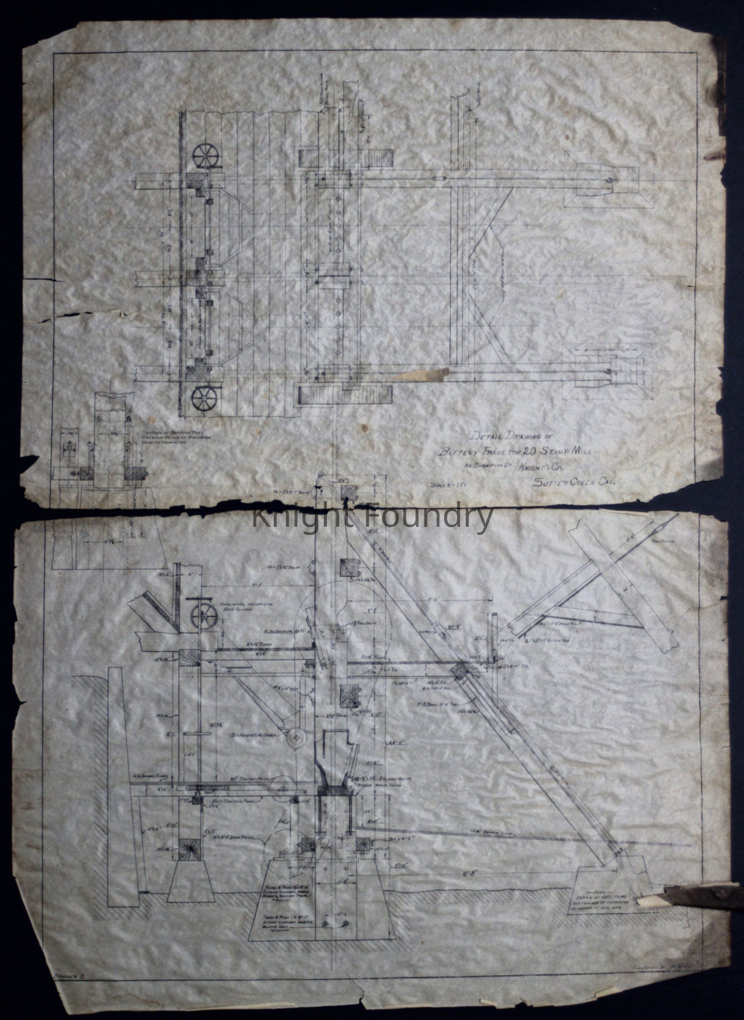 Detail Drawing of Battery Frame for 20 Stamp Mill as Submitted by Knight and Co.Description