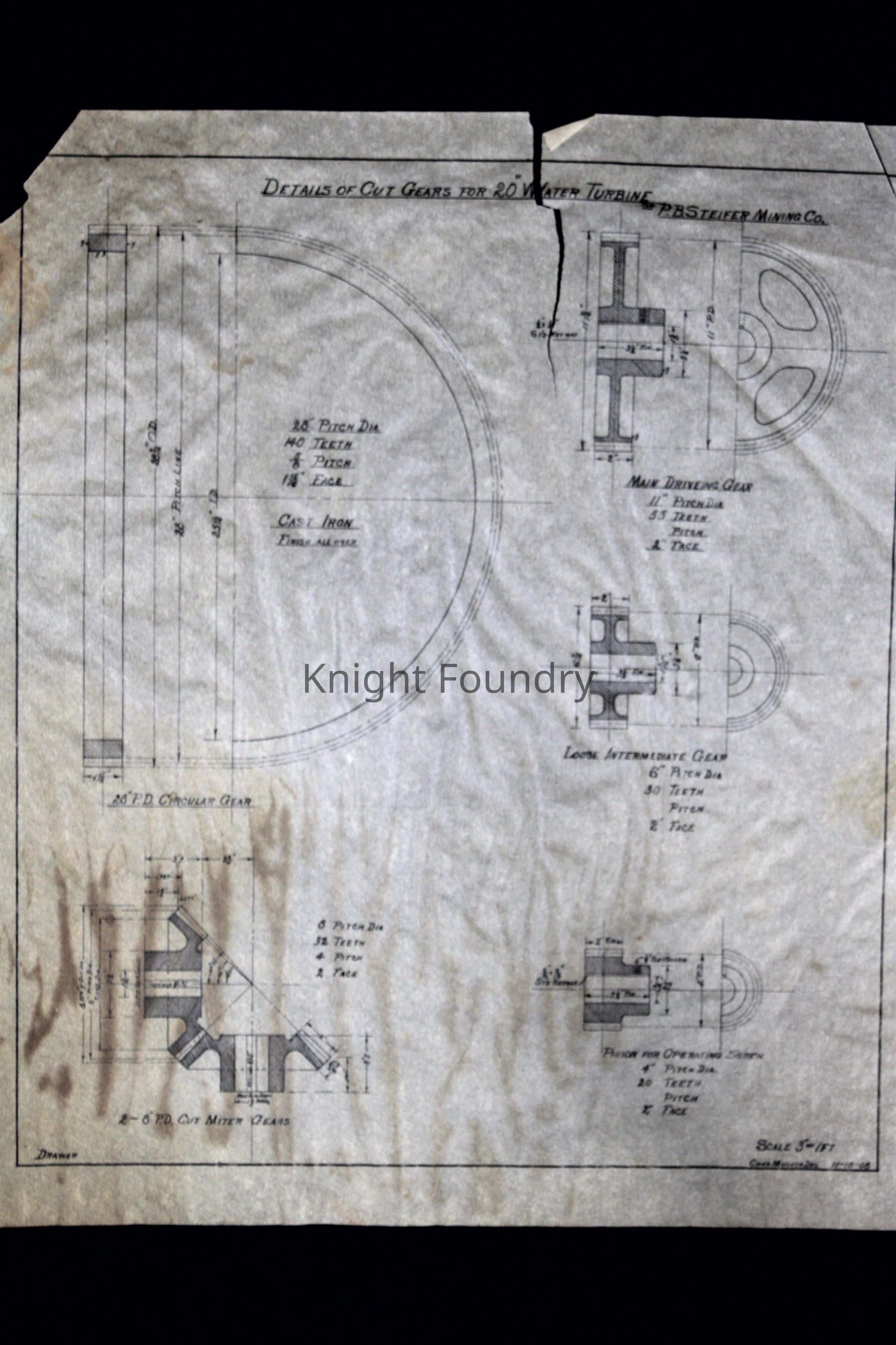 Details of cut gears for 20 inch water turbine for P.B. Steifer Mining CompanyName Type