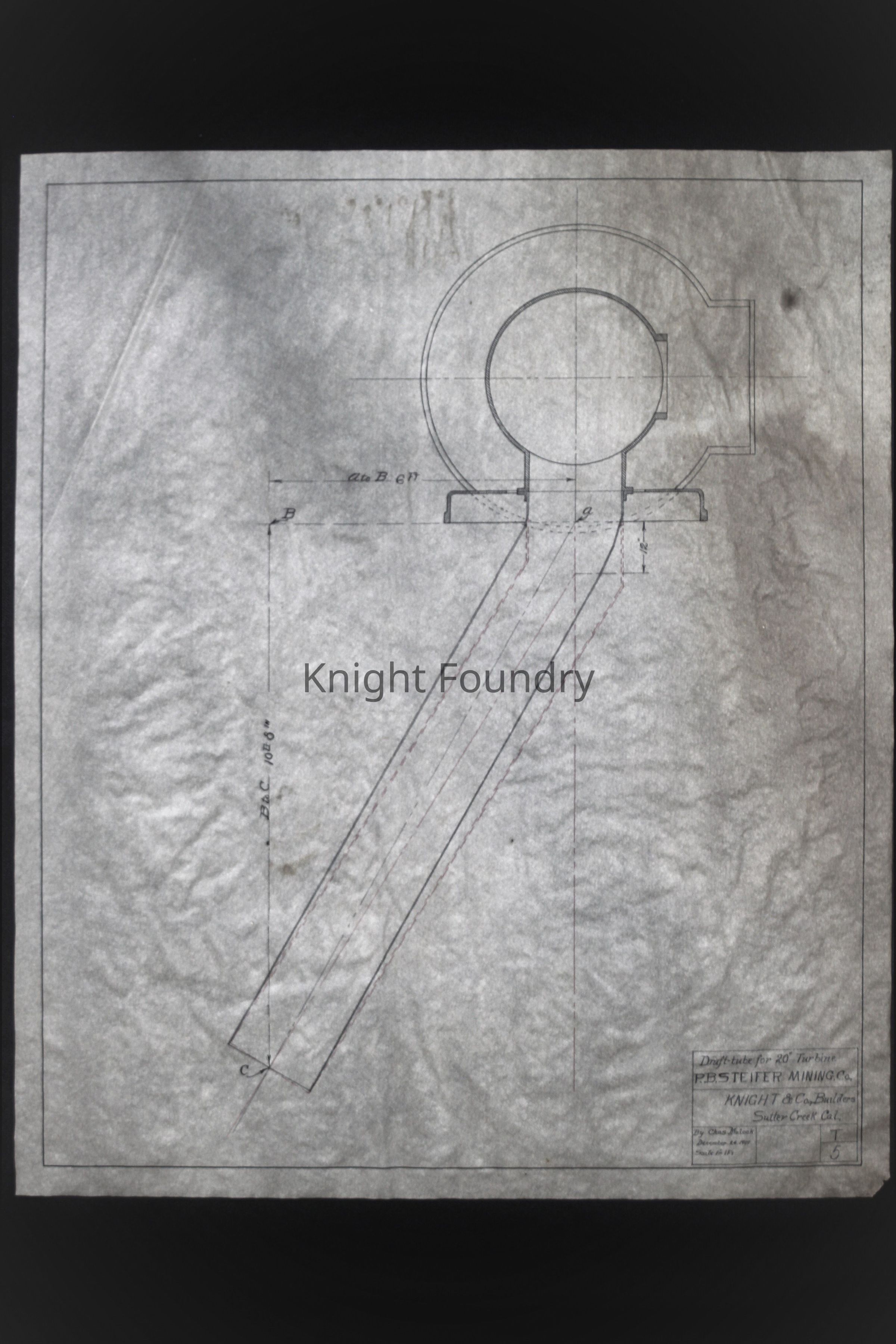 Drawing of a draft tube for a 20 inch water turbine produced for the P.B. Steifer Mining Company.Collection