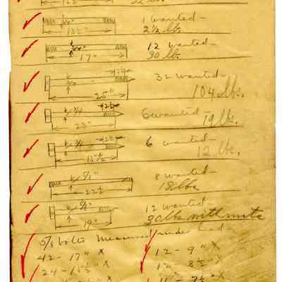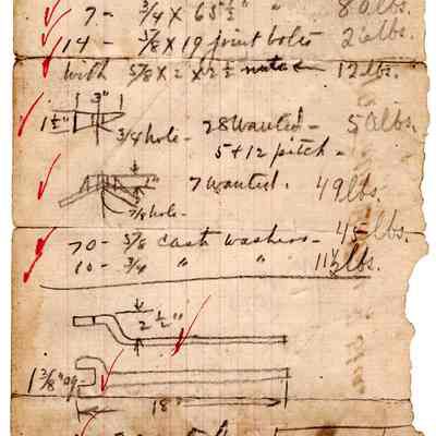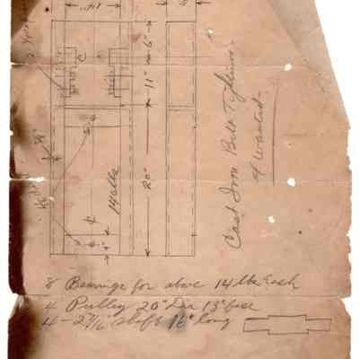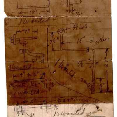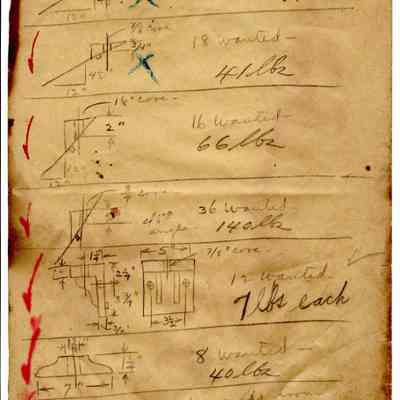 A grouping of 14 various sized papers with calculations and drawings. Some appear to be Carl Borgh's handwritingCollection
