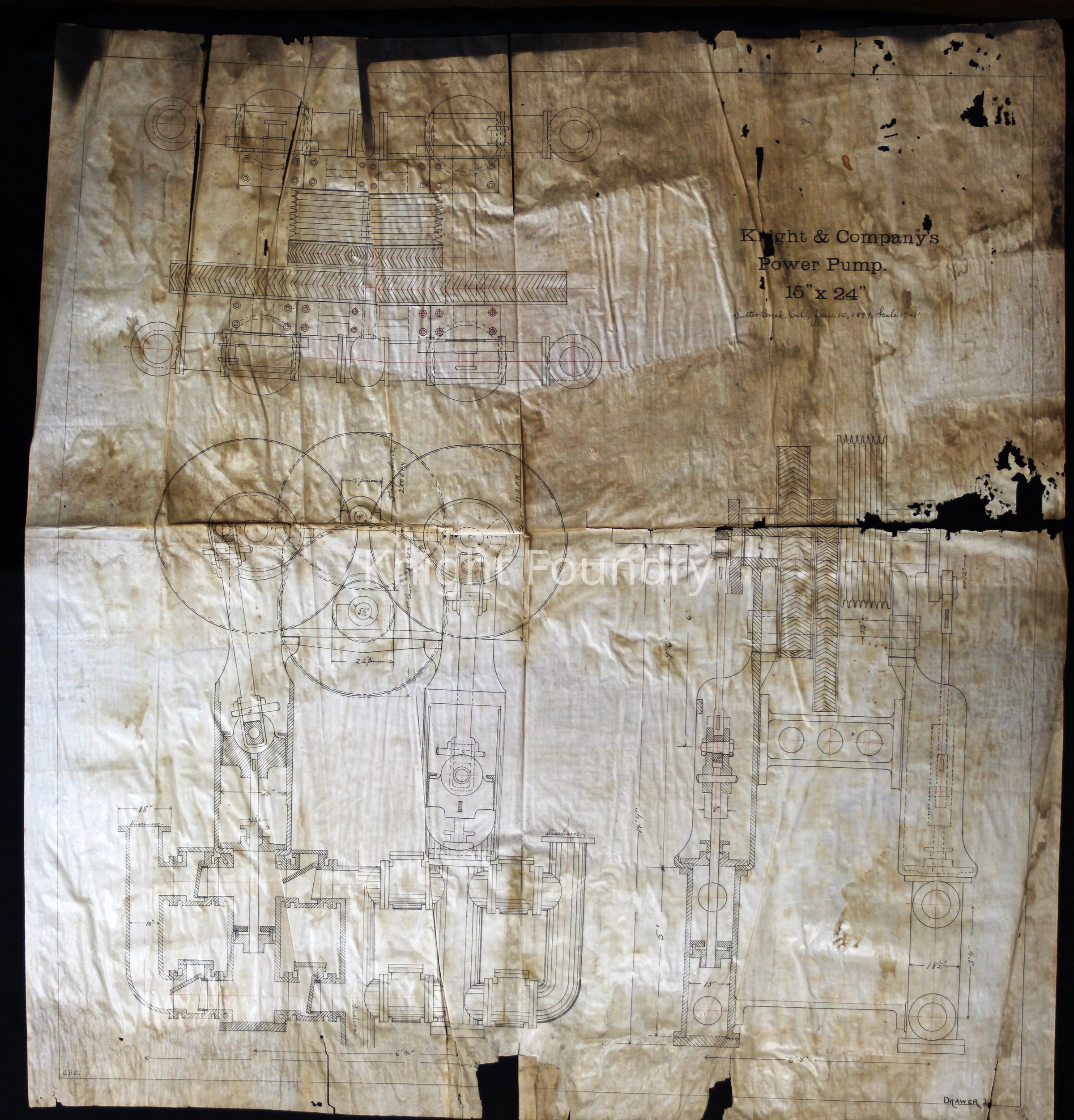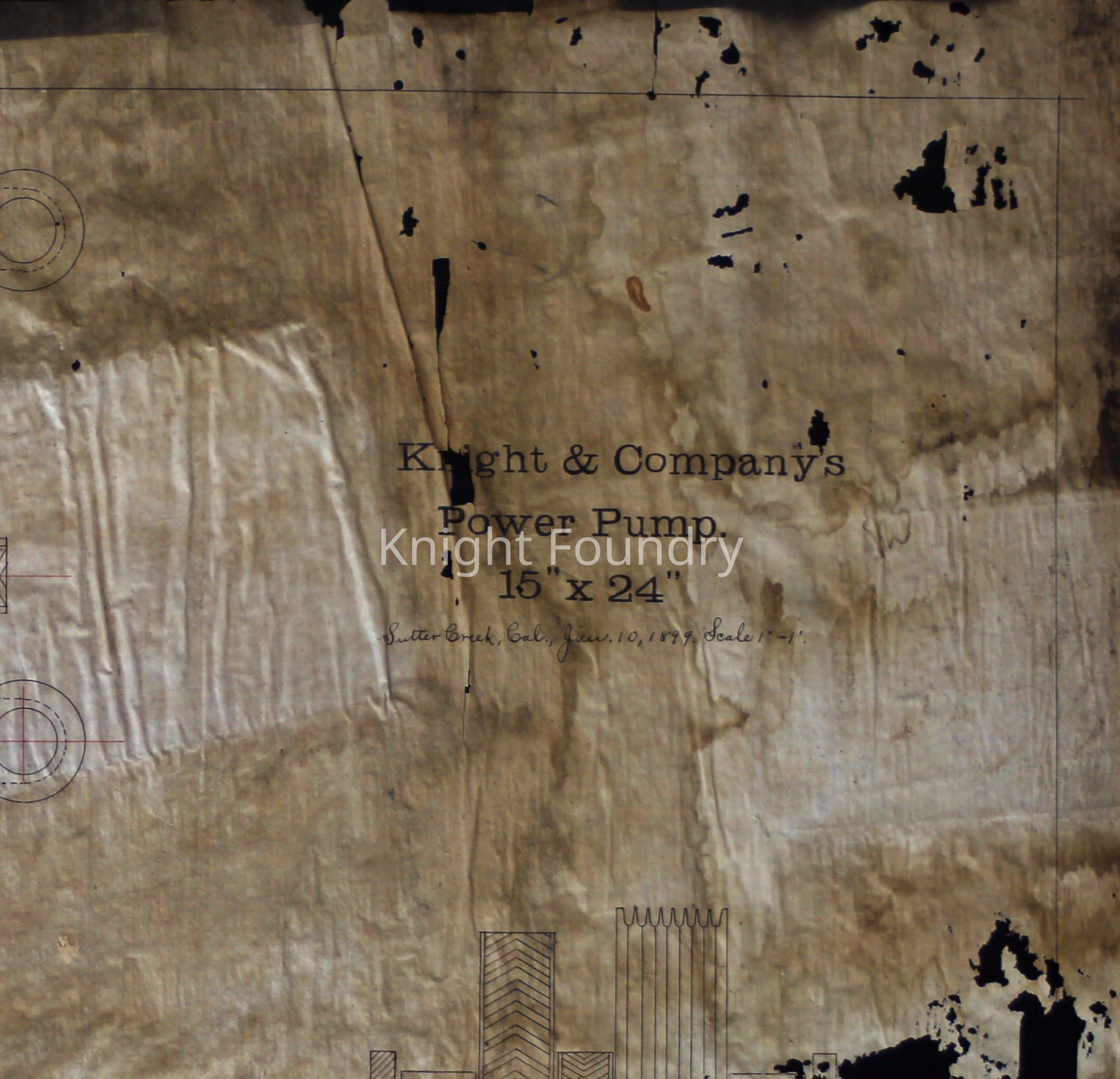 A drawing of Knight and Company power pump. The scale is 1 inch equals 1 foot. The drawing is marked drawer 21Collection