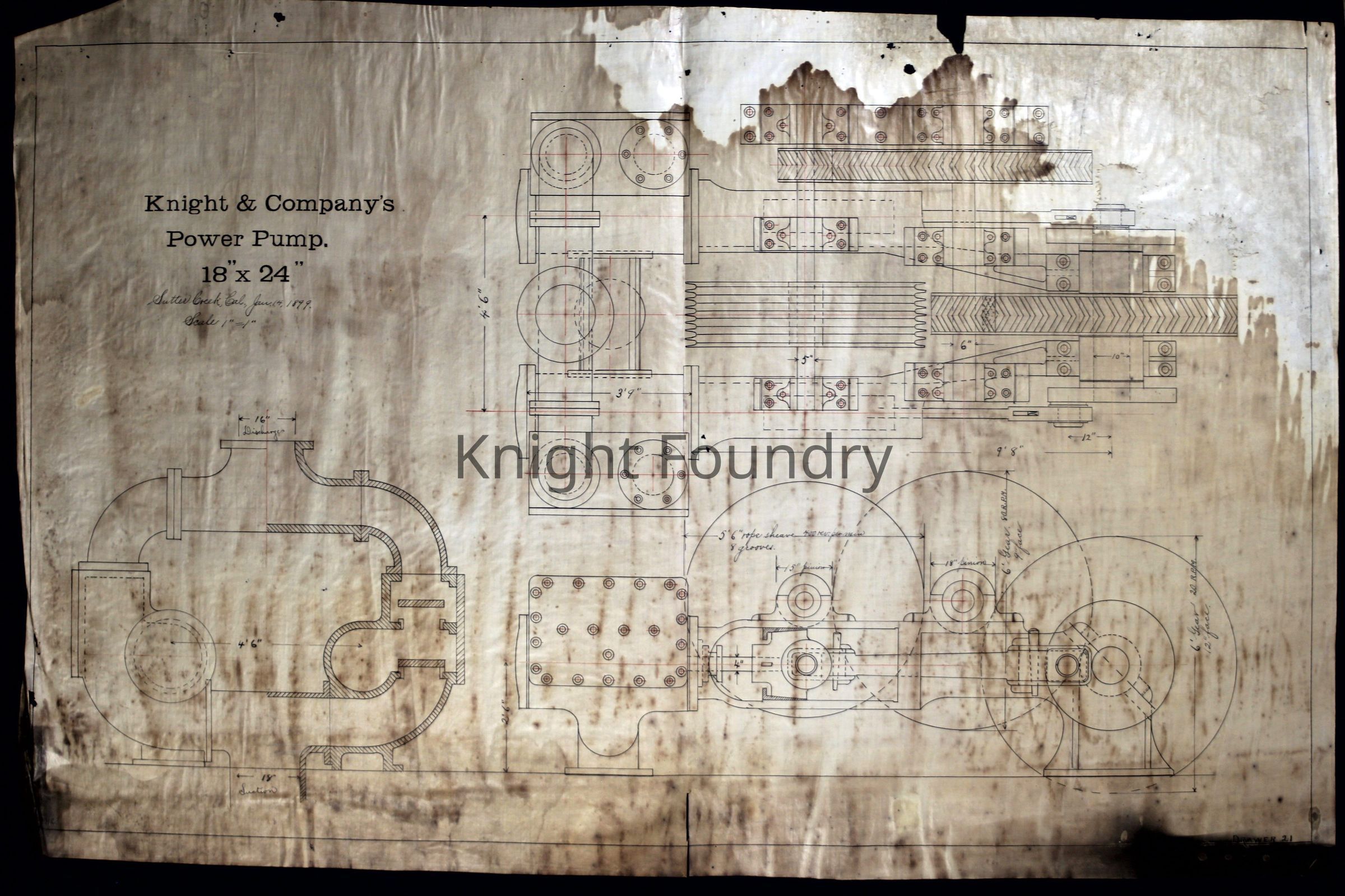 A drawing of an 18 inch x 24 inch power pump. The scale is 1 inch equals 1 inch, but the drawing appears to have varying scales . The drawing is marked drawer 21.Collection