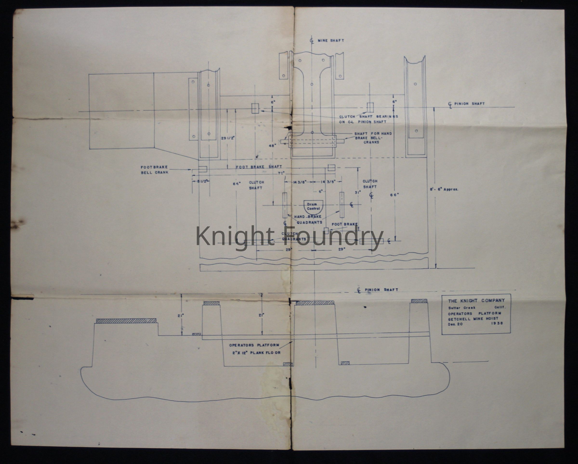 Two identical copies of a print of an operator platform for the Getchell Mine Hoist.Collection