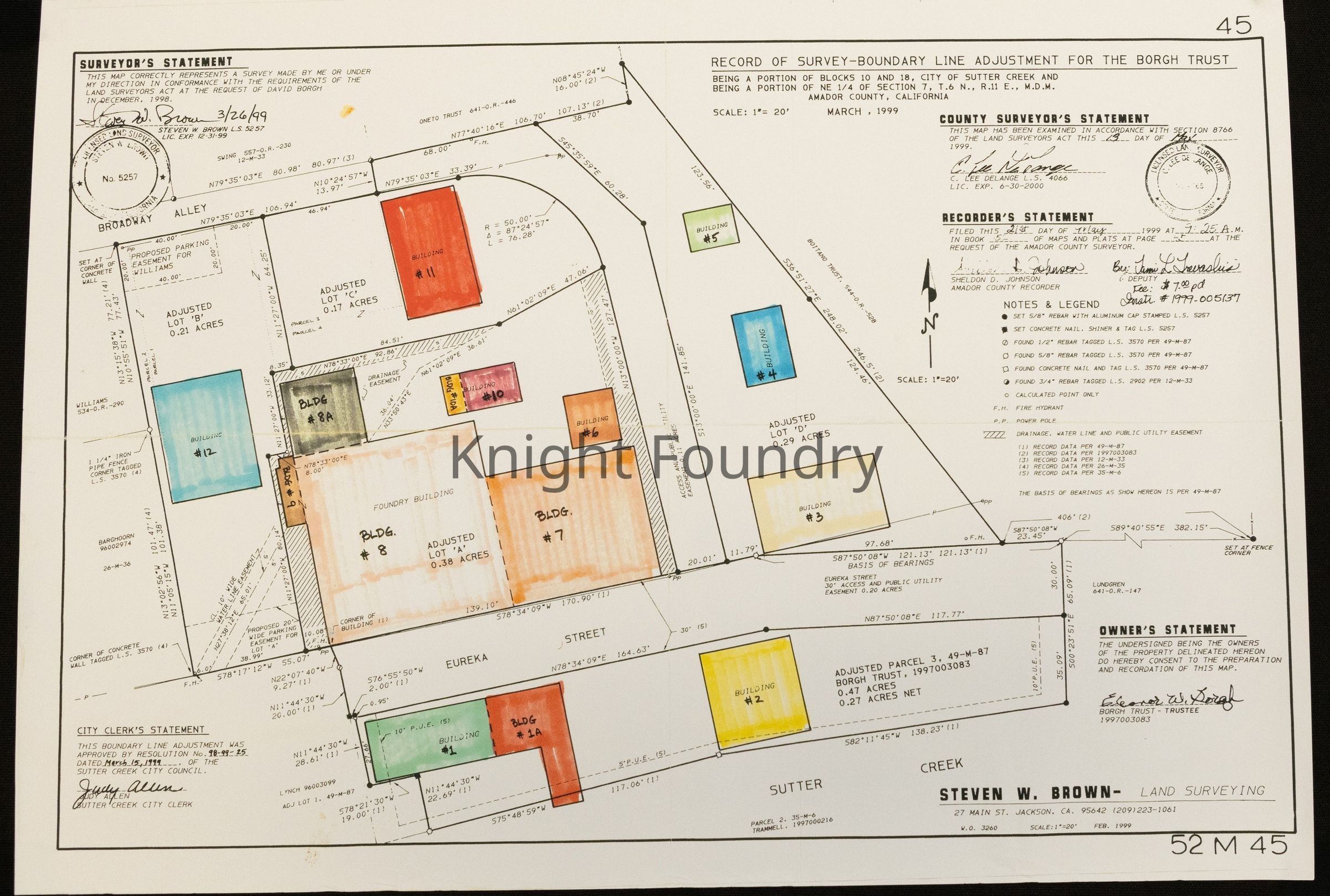 Set of 2 surveyor maps showing adjustments to the property boundaries of the Knight Foundry for the Borgh Trust.Collection
