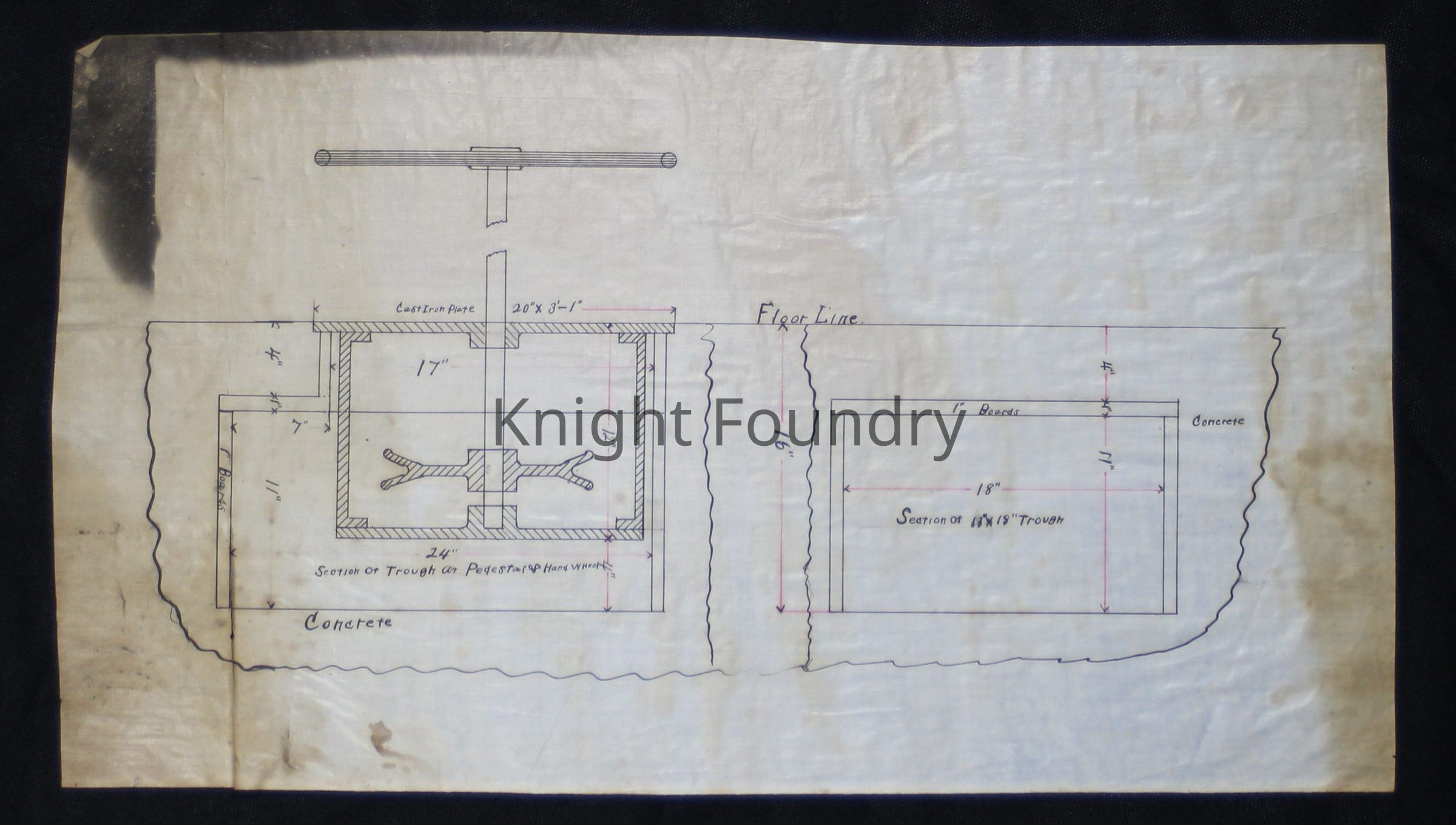 Drawing of a section of a trough at the pedestal and the hand wheelCollection
