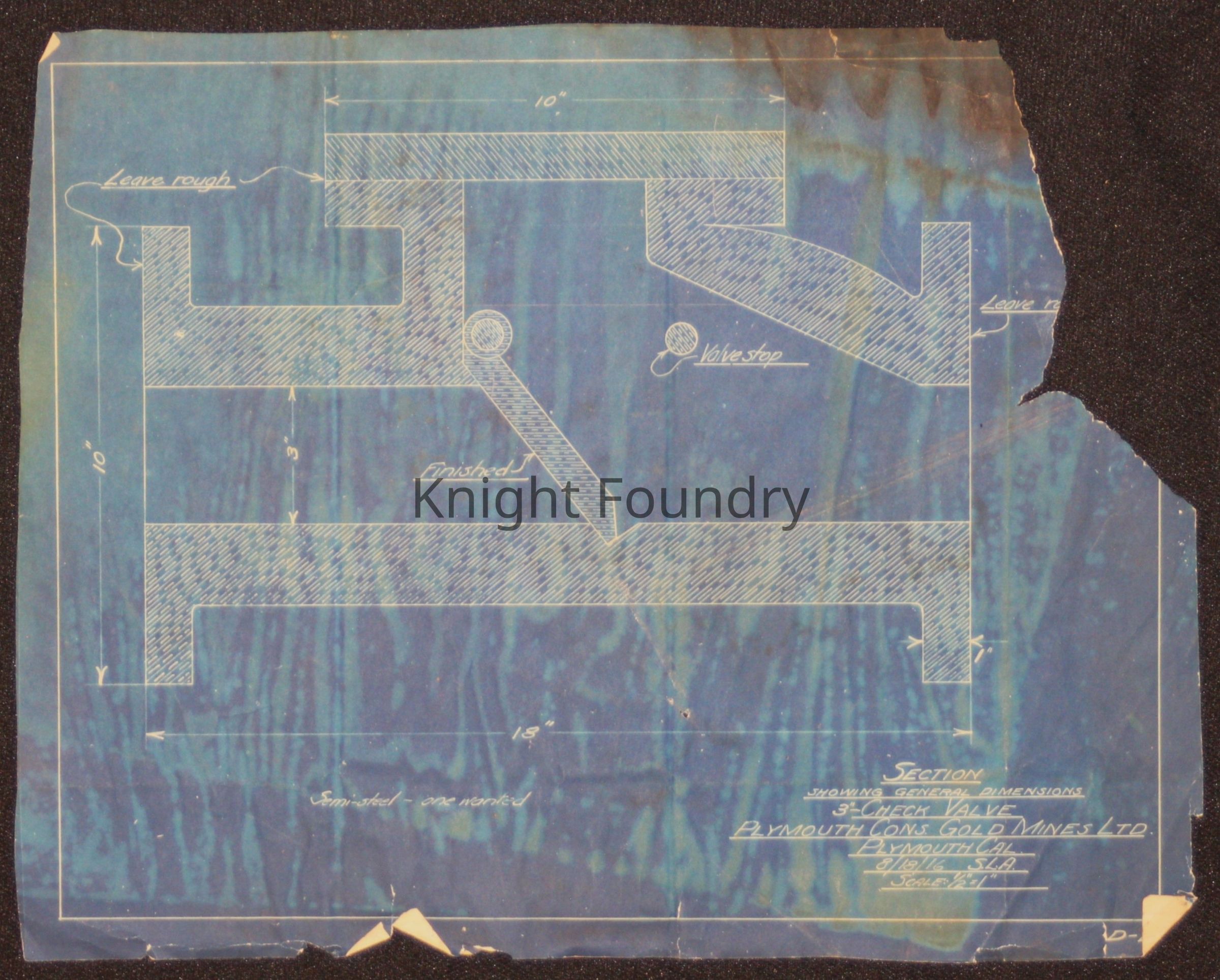 Blueprint of section showing general dimensions 3 inch check valve for Plymouth Consolidated Gold Mines, LtdCollection